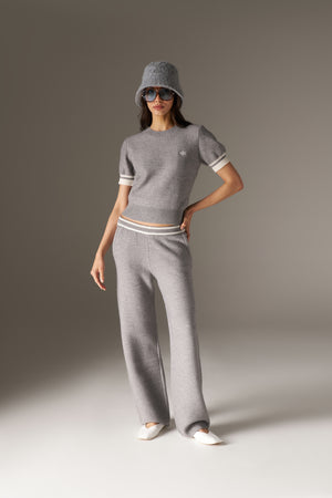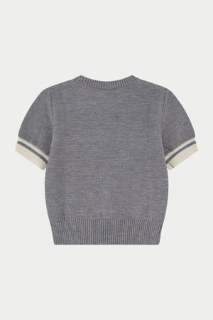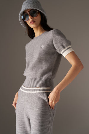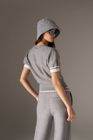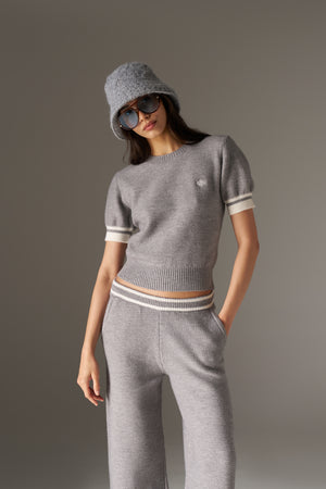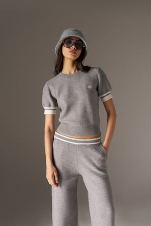 CONTRAST STRIPE SHORT SLEEVE KNIT TEE - GREY