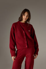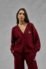 FLUFFY KNIT EMBLEM EMBROIDERED CARDIGAN
