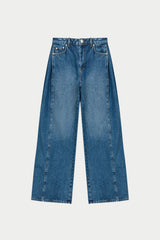 ADJUSTABLE PLEAT DETAIL WIDE LEG JEANS