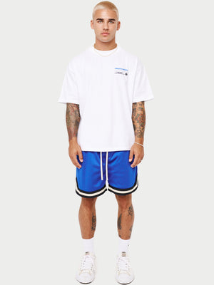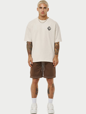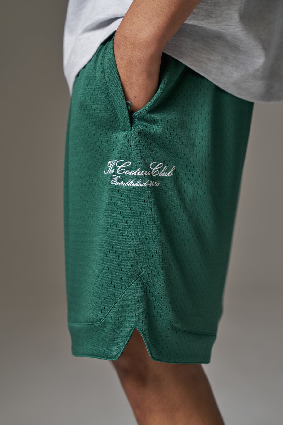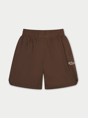 - Branded embroidery to centre left of shorts