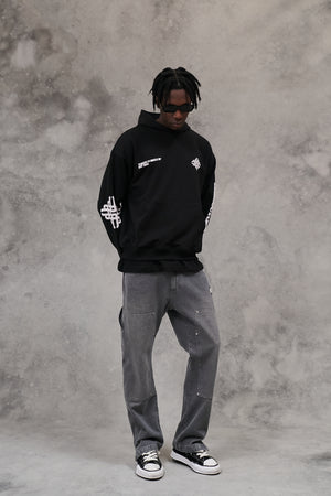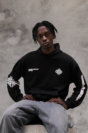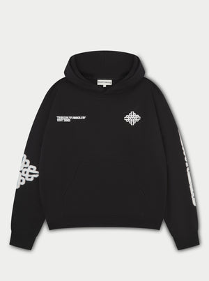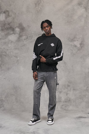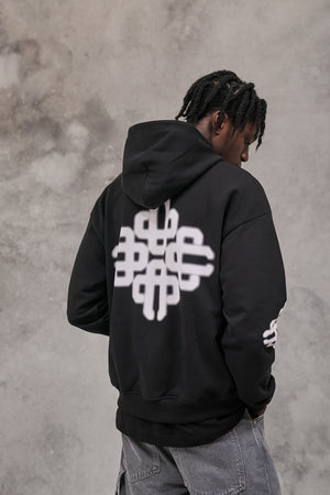 BLURRED EMBLEM GRAPHIC HOODIE - BLACK