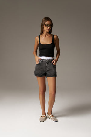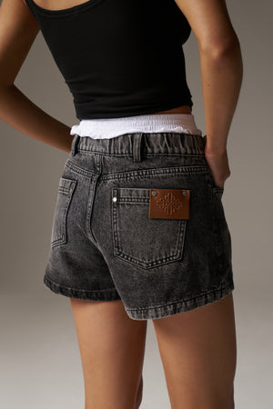 BOXER WAISTBAND DENIM SHORTS - BLACK WASH