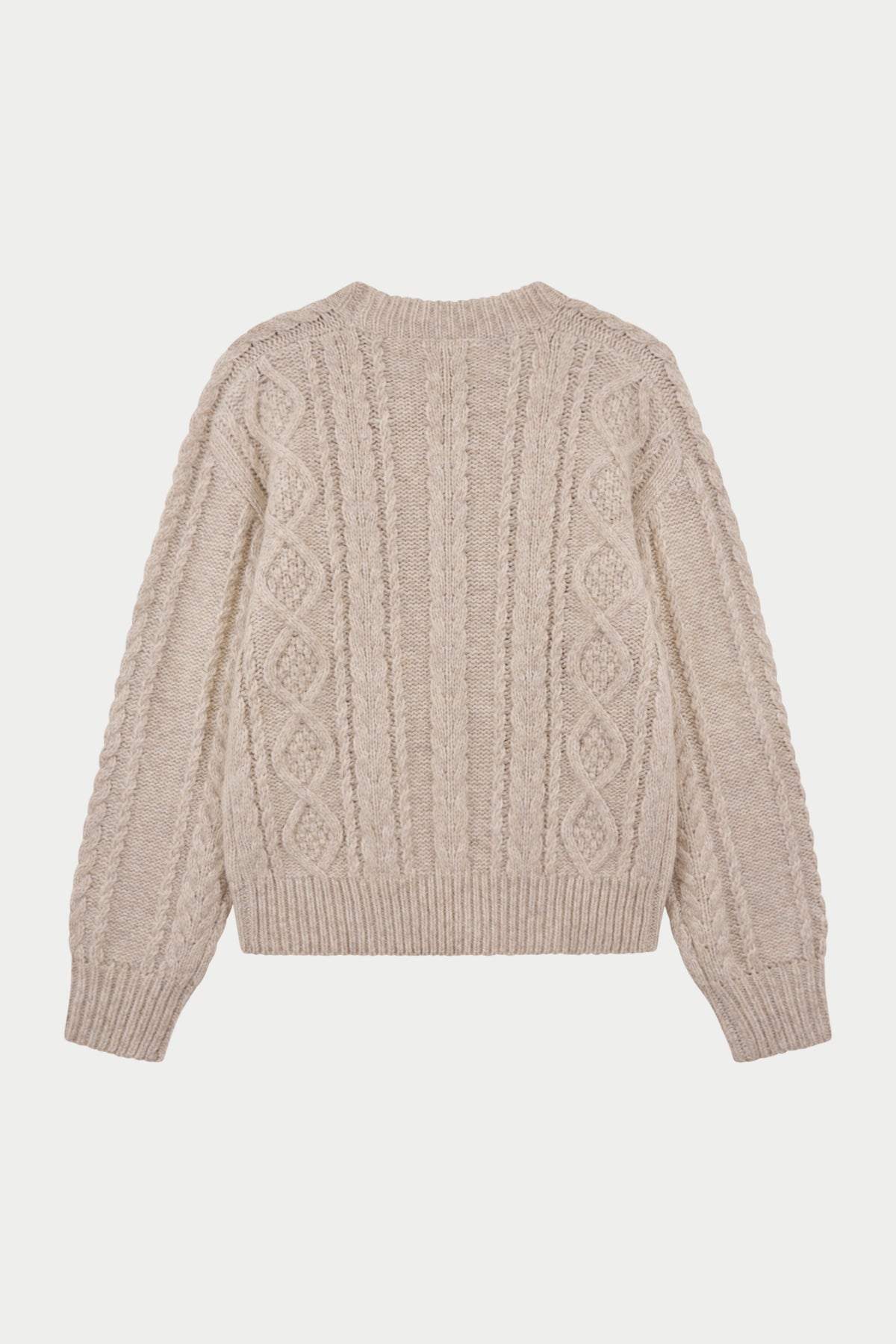 CABLE KNIT EMBROIDERED EMBLEM JUMPER - OAT