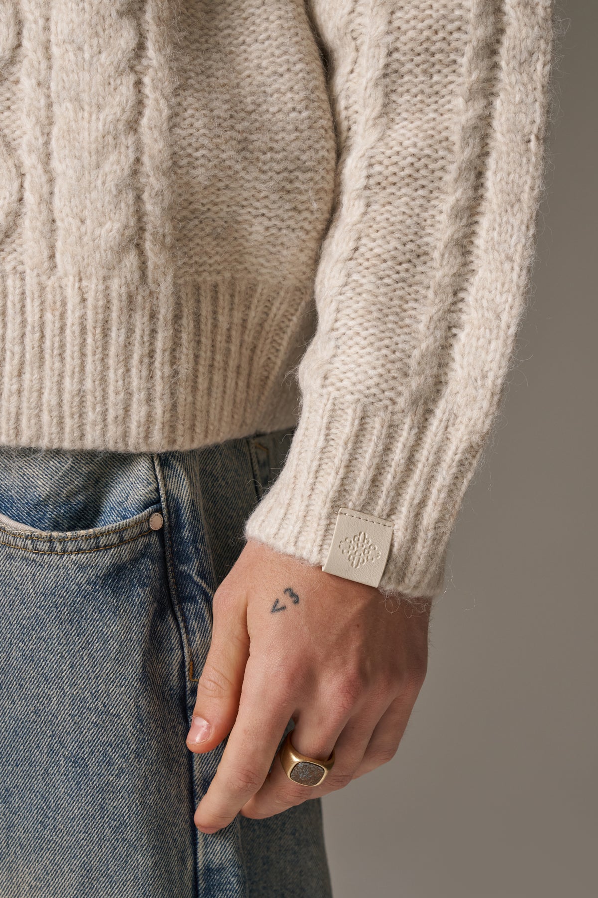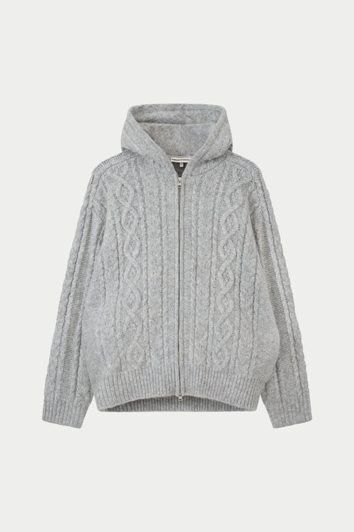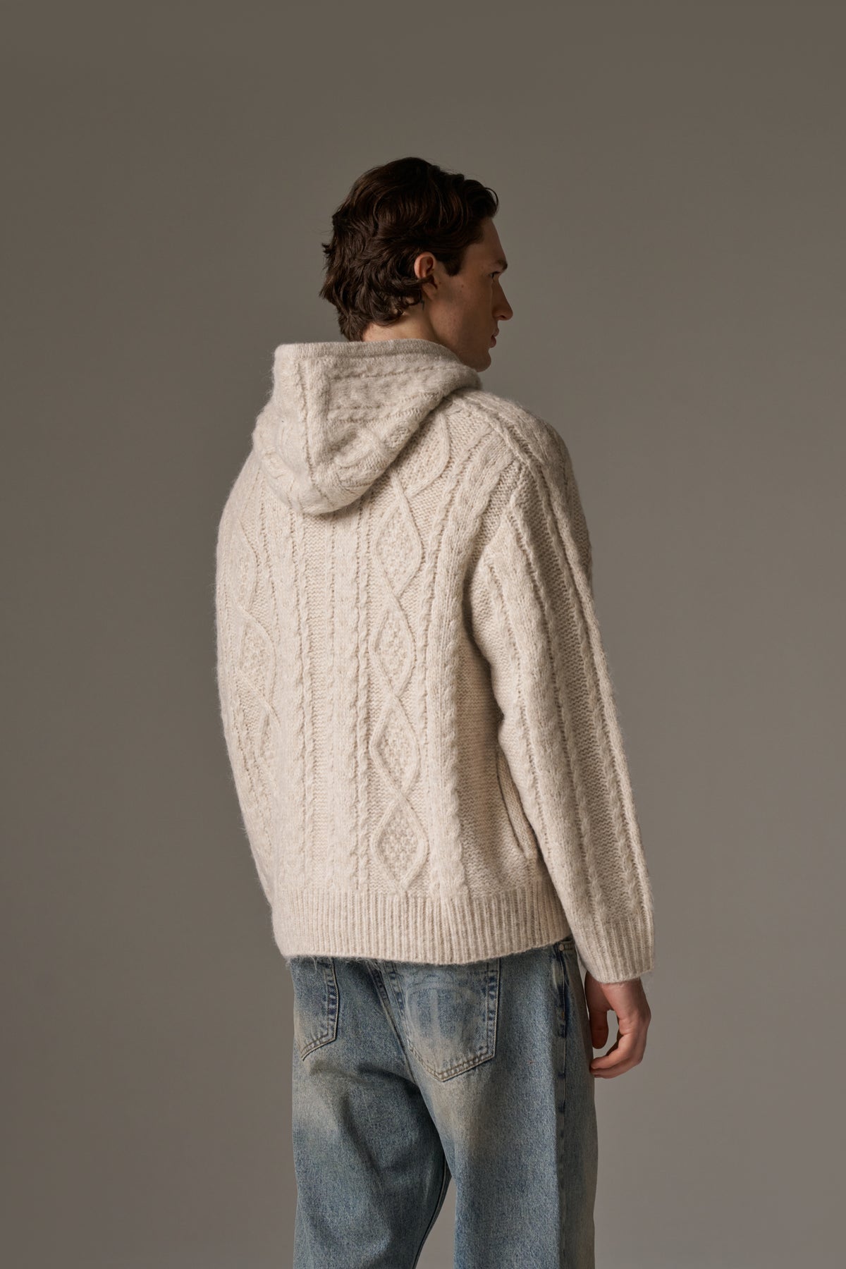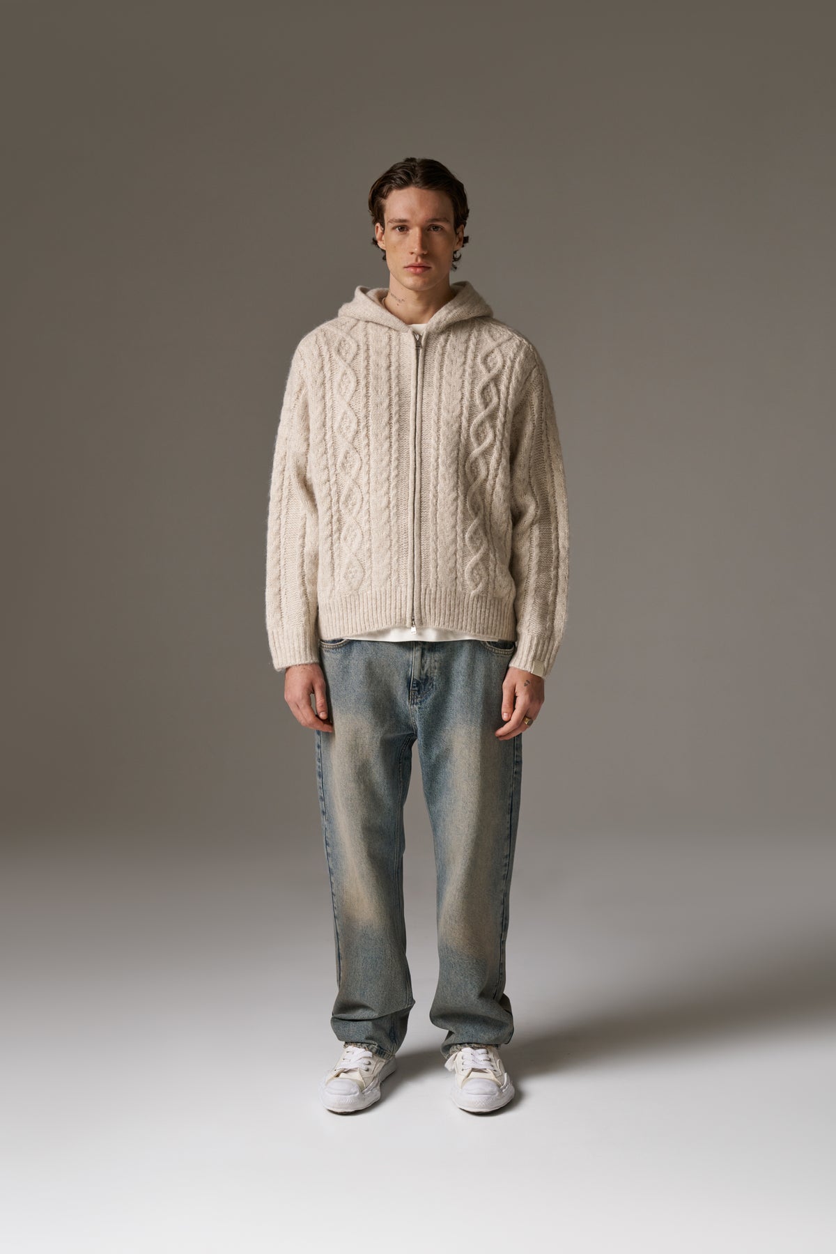 CABLE KNIT ZIP THROUGH HOODIE - STONE