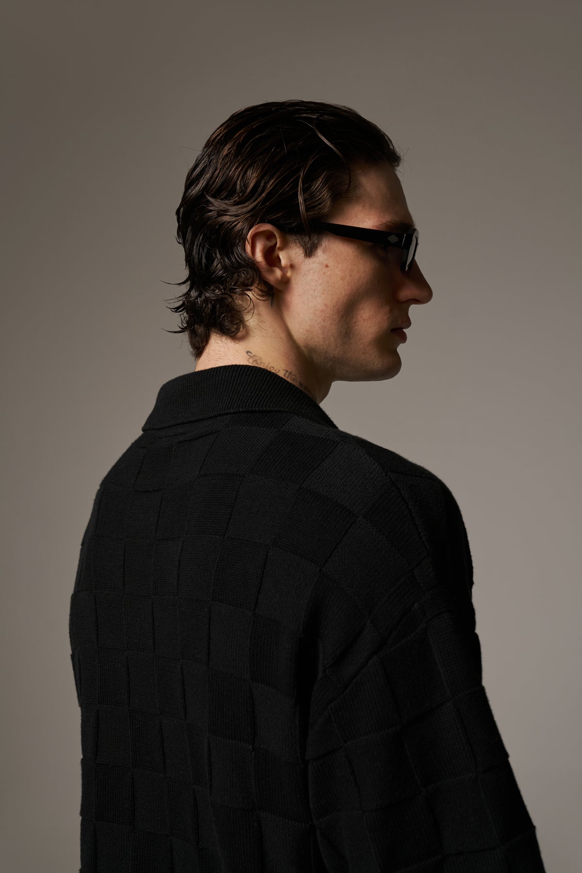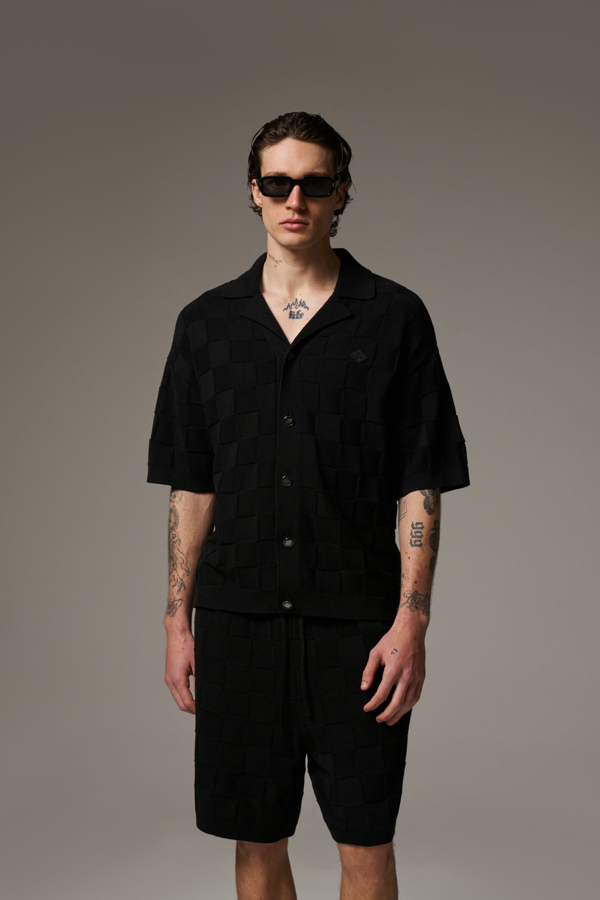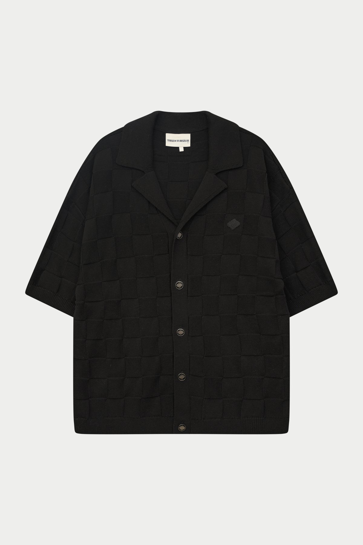 CHECKERBOARD KNITTED SHIRT - BLACK