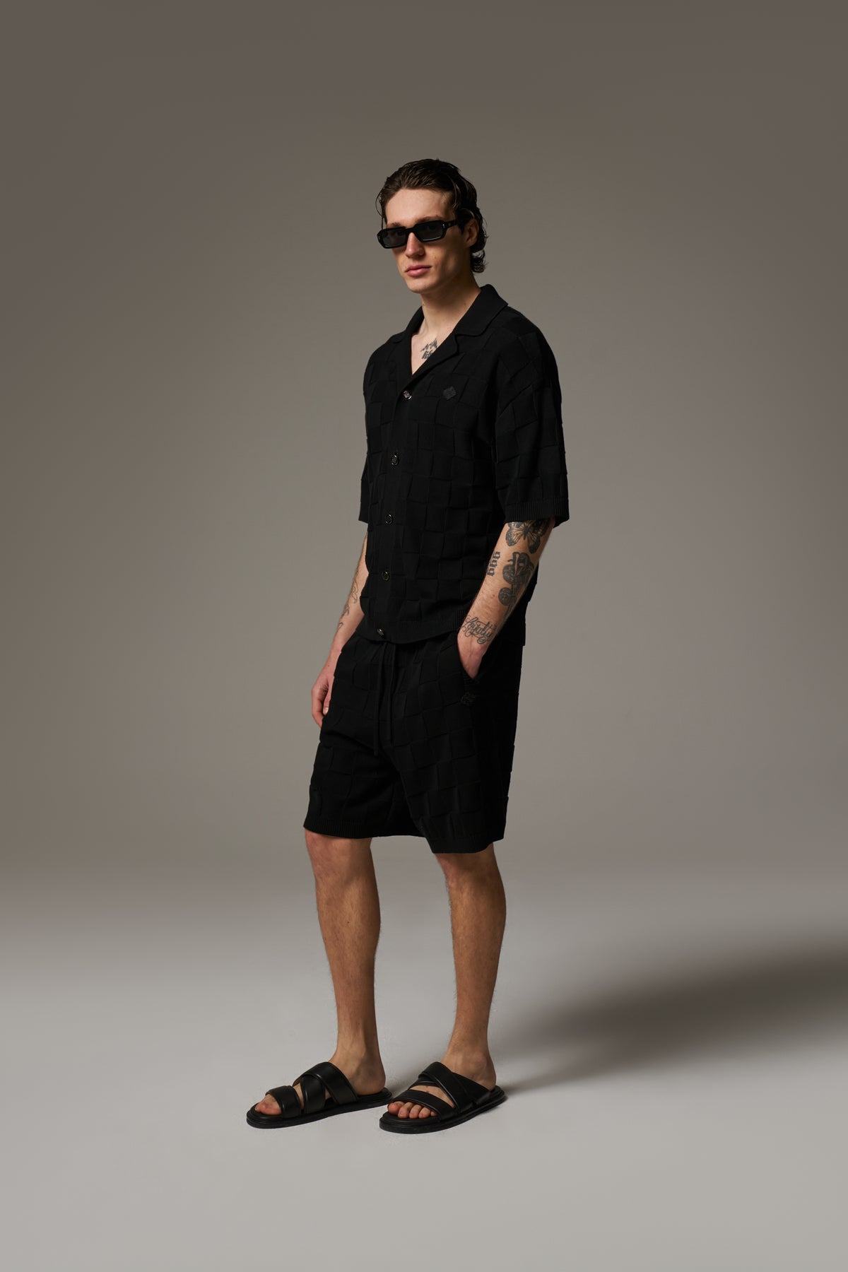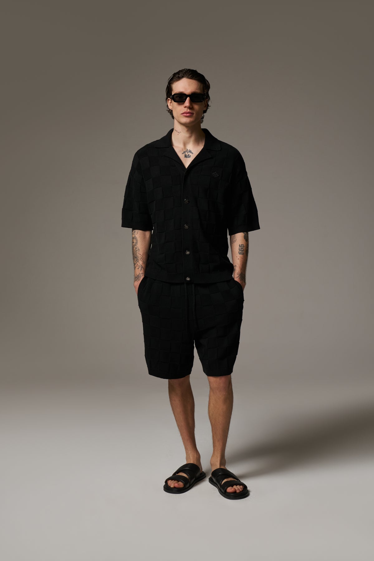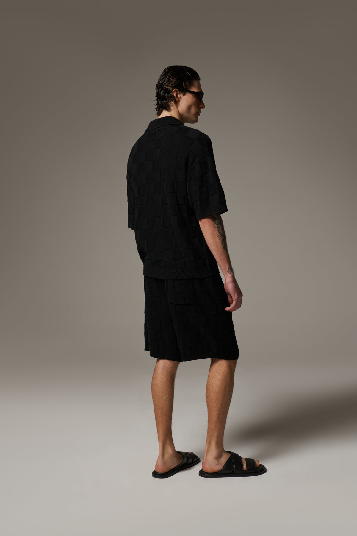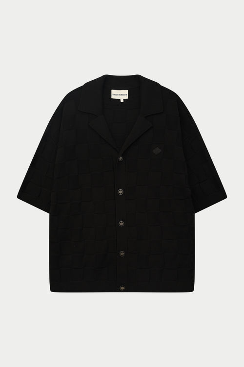 CHECKERBOARD KNITTED SHIRT - BLACK