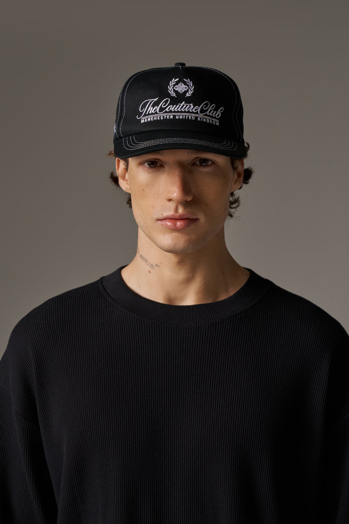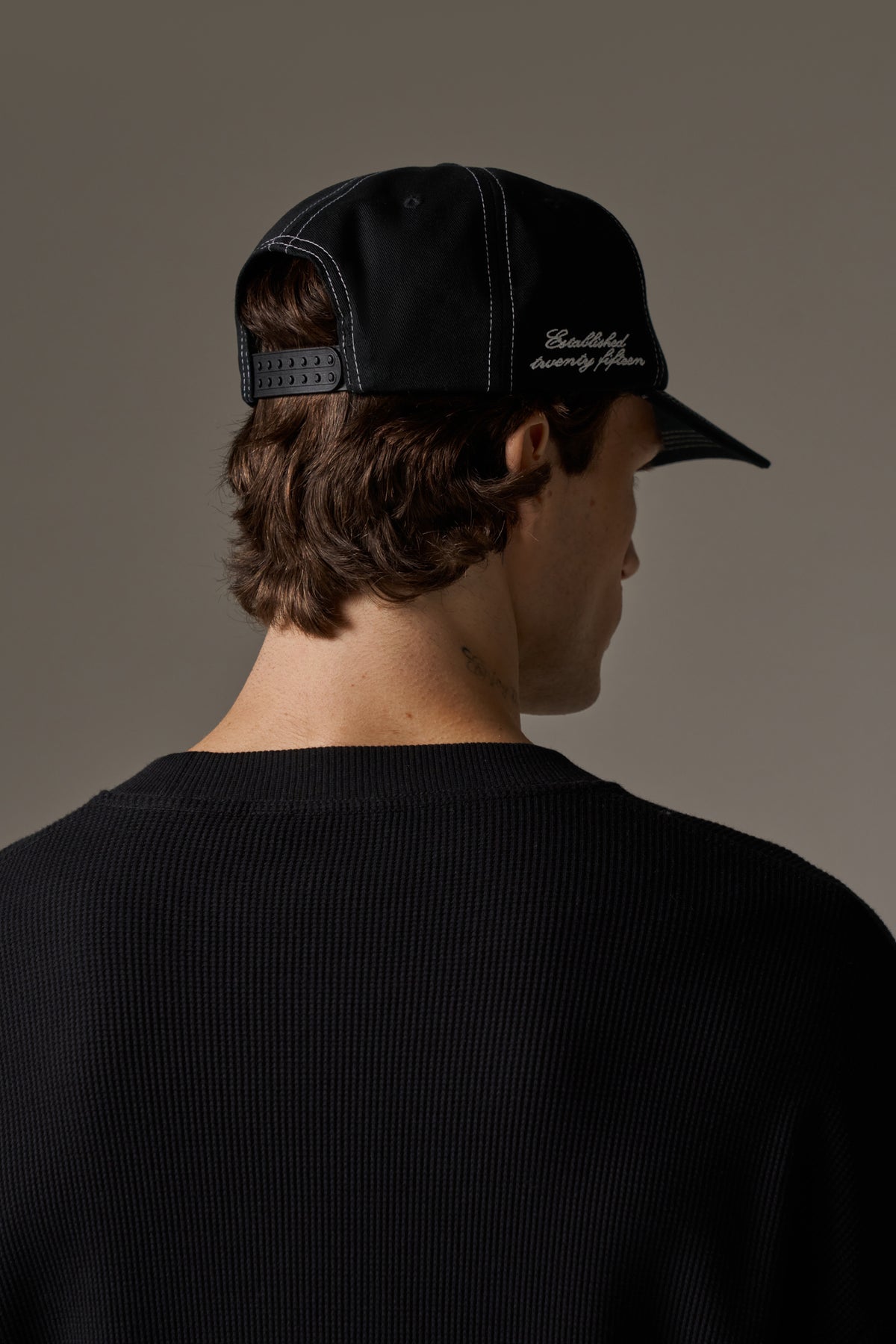 CONTRAST STITCH LAUREL EMBROIDERY CAP - BLACK