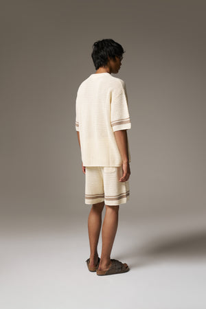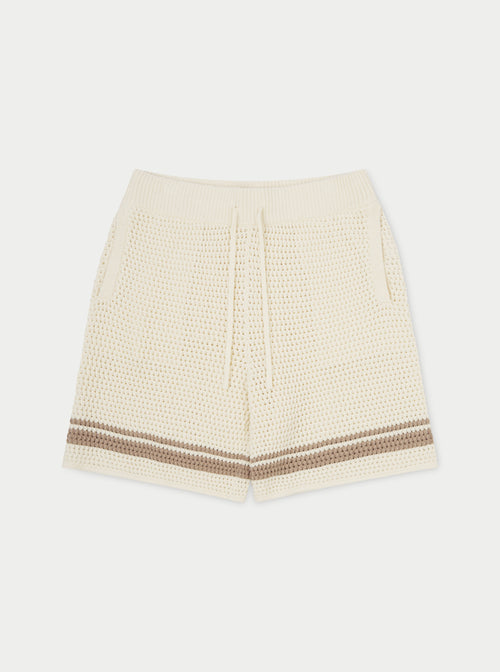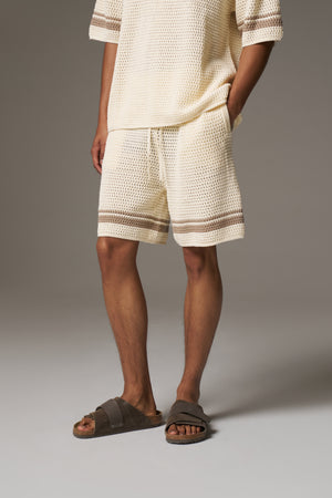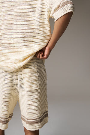 CROCHET KNITTED CONTRAST STRIPE SHORTS - OFF WHITE