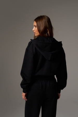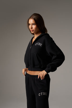CTRE ZIP THROUGH RELAXED HOODIE - BLACK