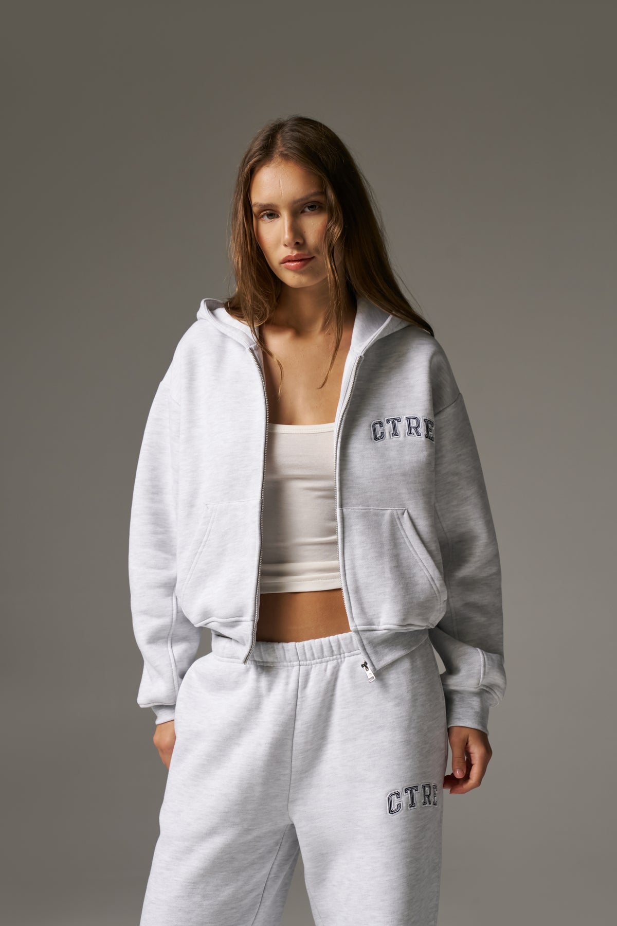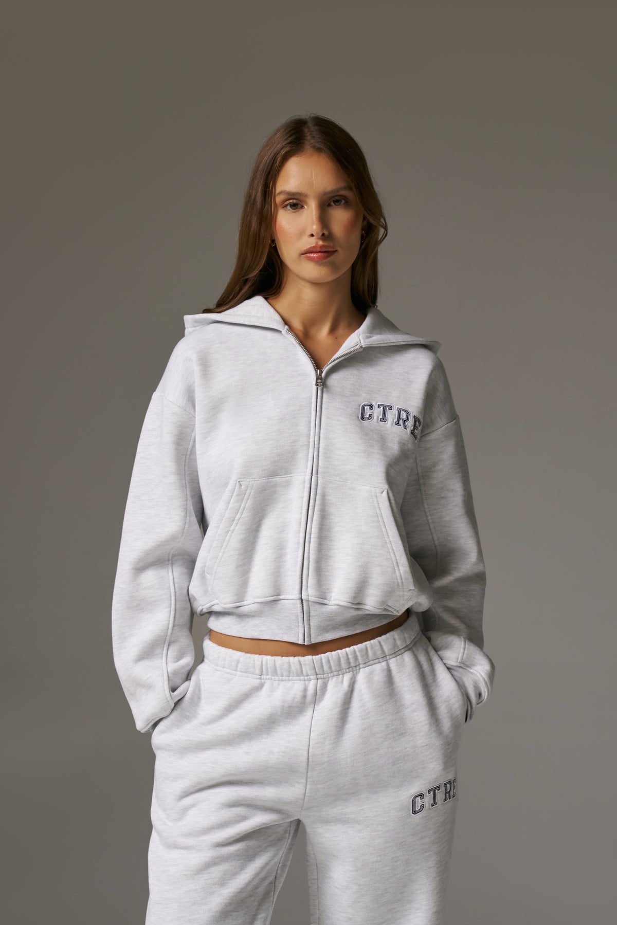 CTRE ZIP THROUGH RELAXED HOODIE - GREY MARL