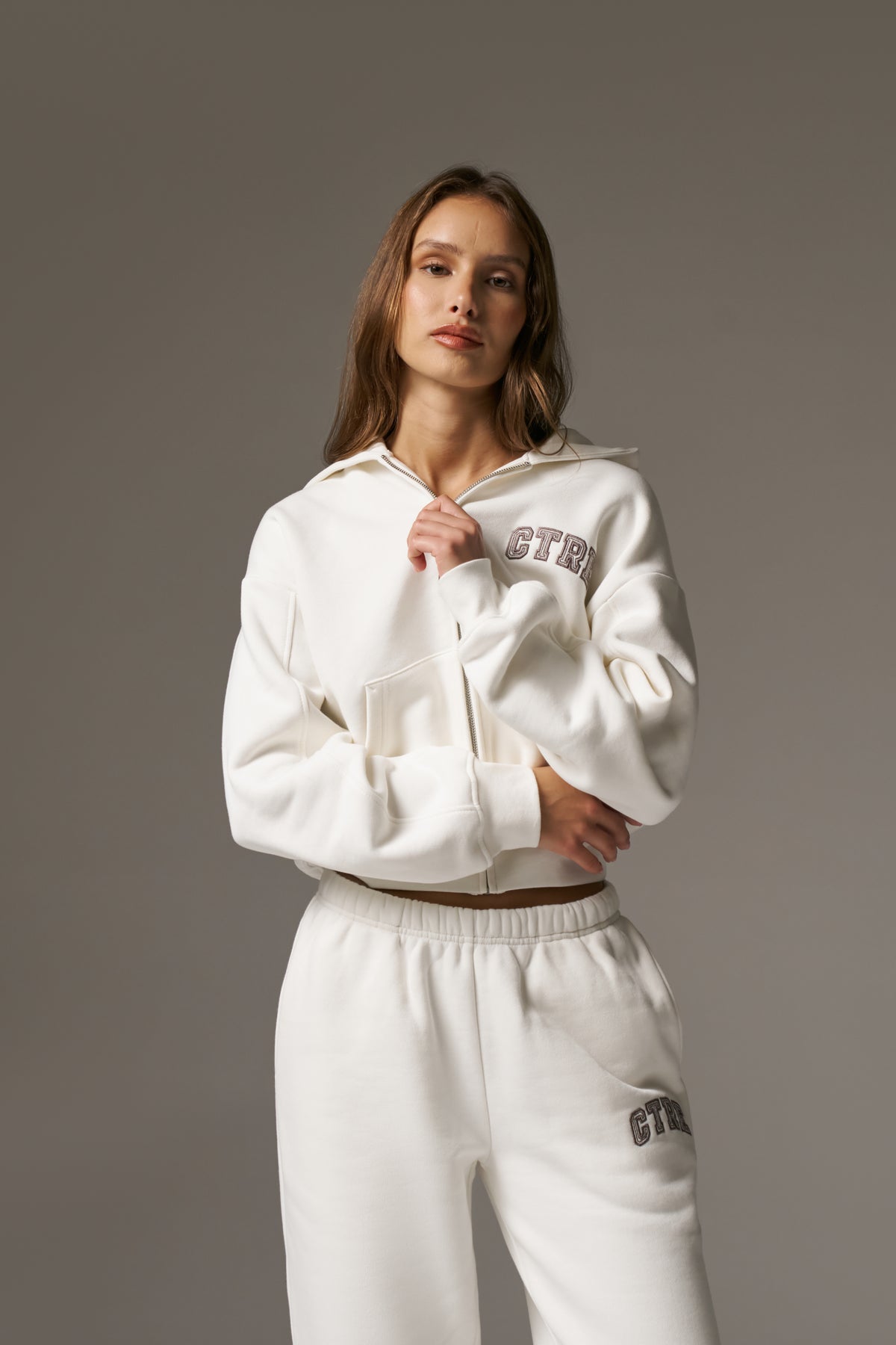CTRE ZIP THROUGH RELAXED HOODIE - OFF WHITE