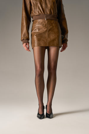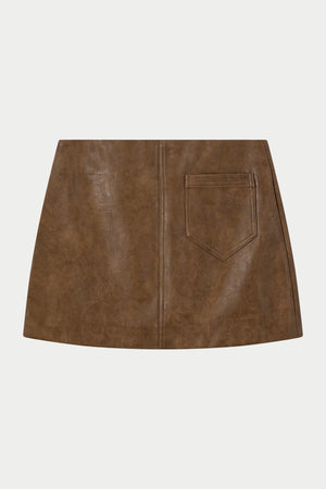 FAUX LEATHER MINI SKIRT - WASHED BROWN