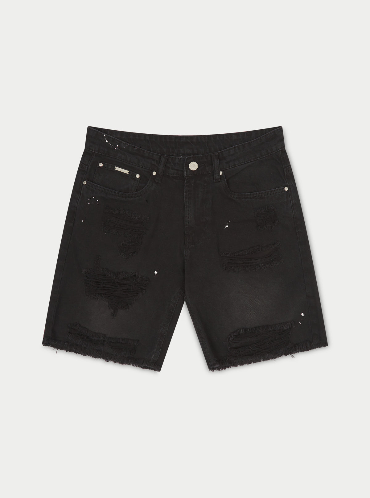 DISTRESSED RAW HEM DENIM SHORTS - WASHED BLACK