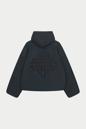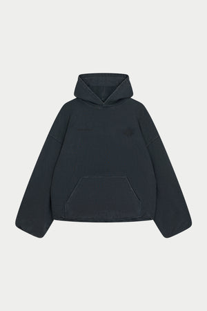 DOUBLE LAYER WASHED EMBLEM HOODIE - BLACK