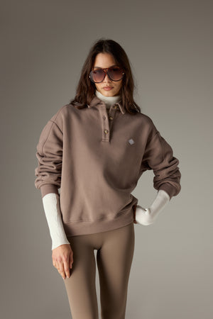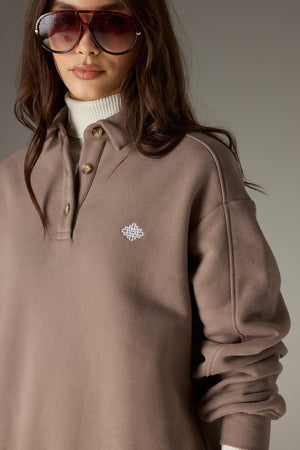 EMBLEM EMBROIDERED RUGBY POLO - COCOA