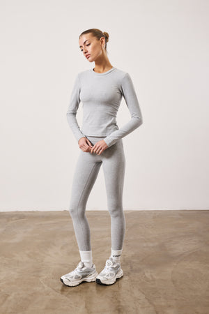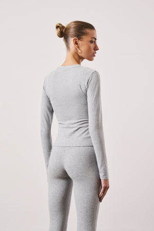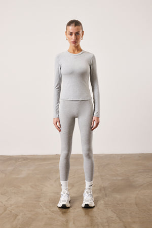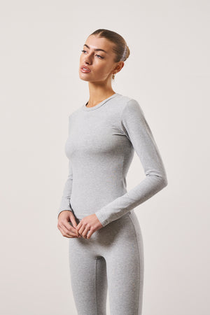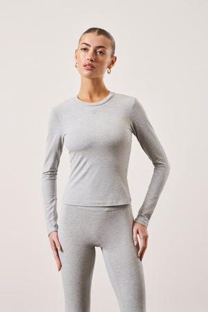 EMBLEM JERSEY LONG SLEEVE TOP - GREY MARL
