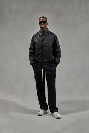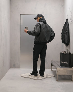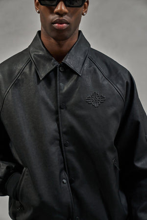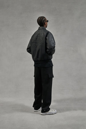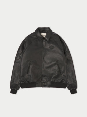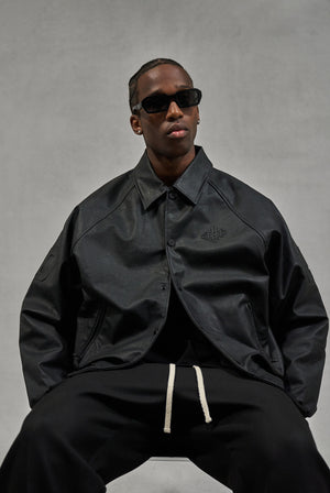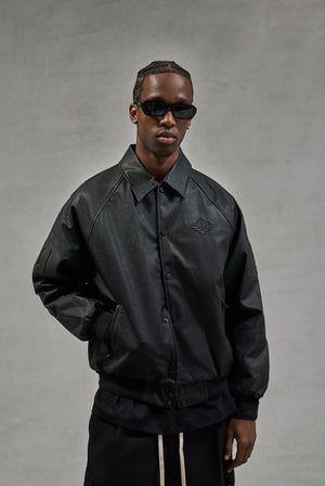 - Relaxed fit bomber jacket with collar- Faux leather fabric