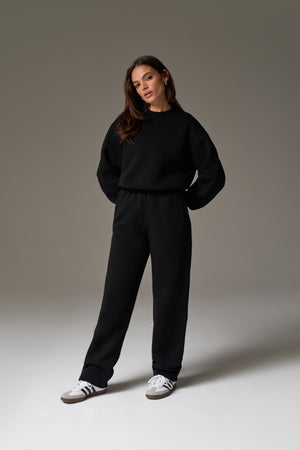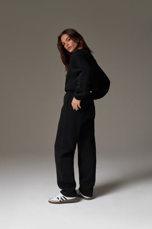 EMBROIDERED CREST RELAXED JOGGERS - BLACK