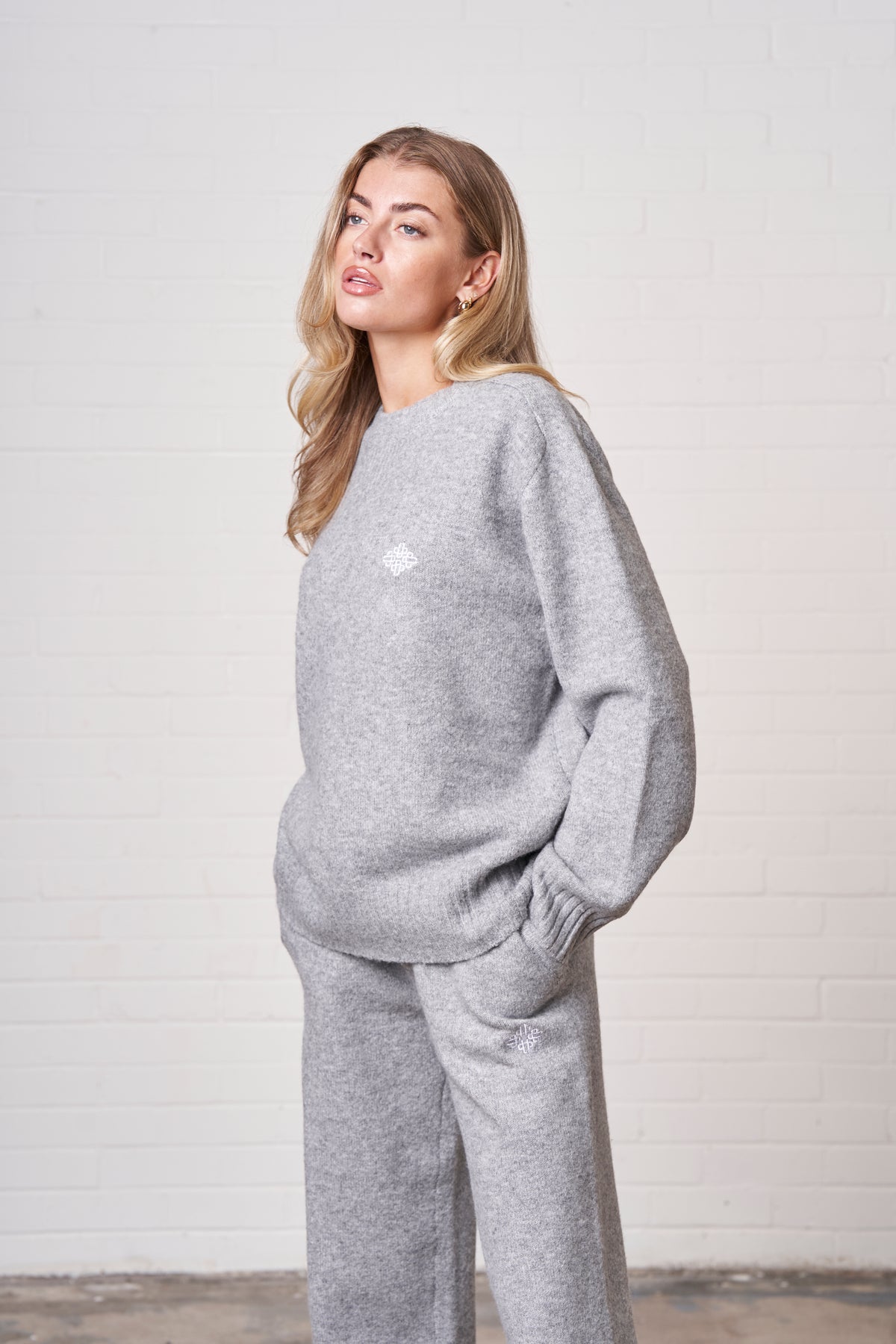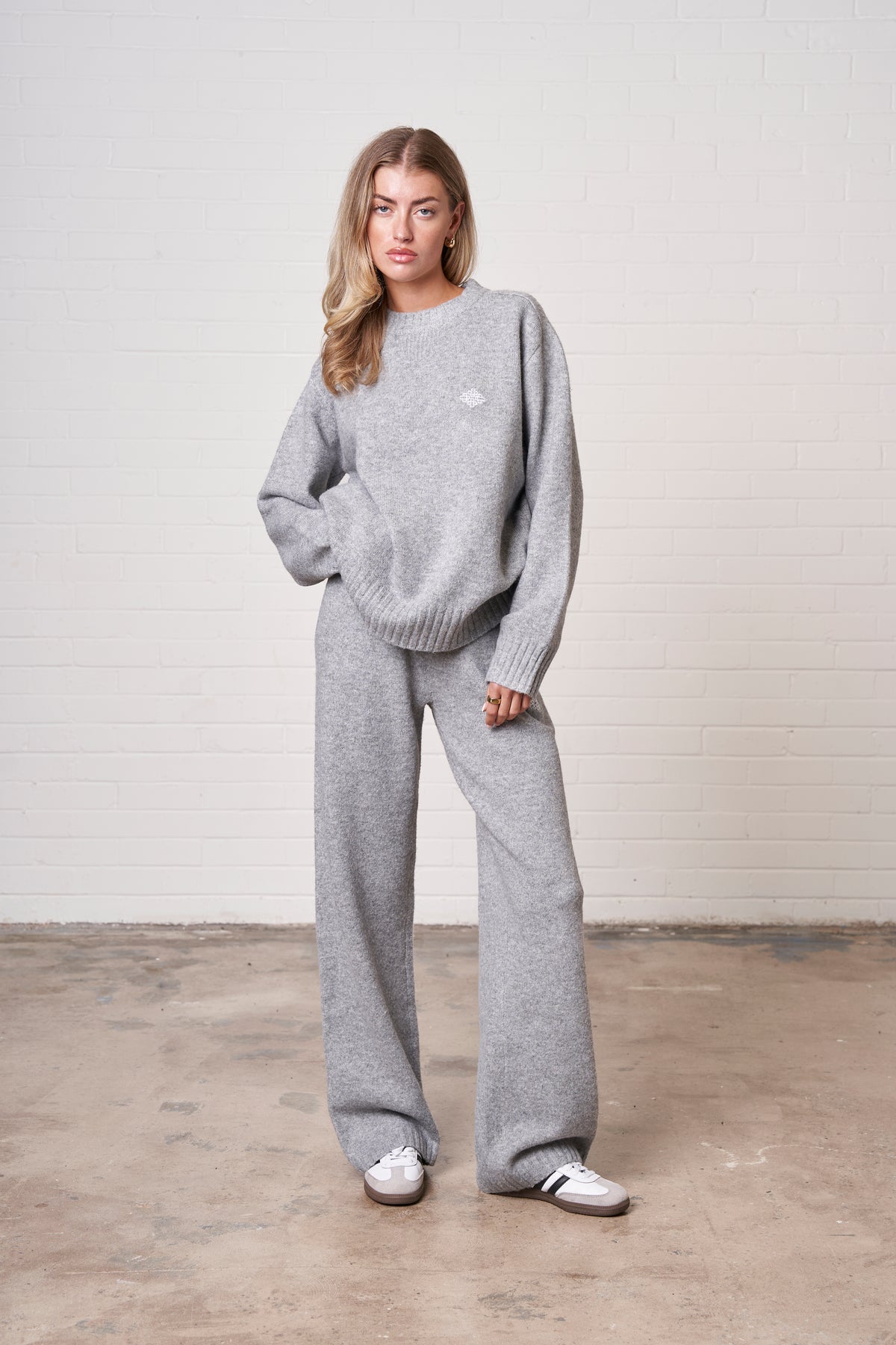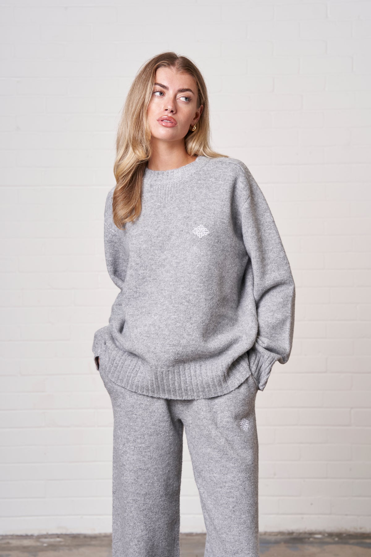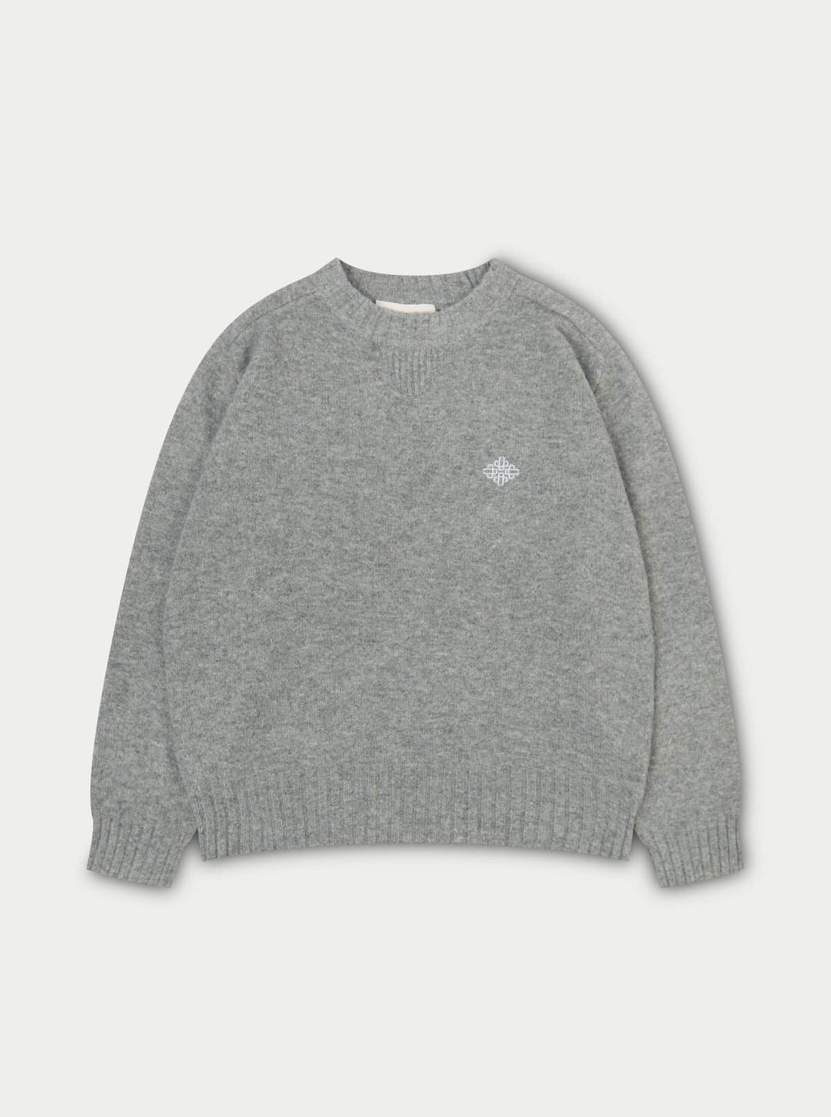 FLUFFY KNIT EMBLEM EMBROIDERED CREW - GREY MARL