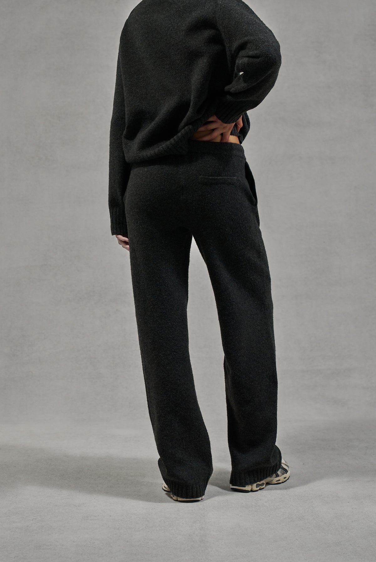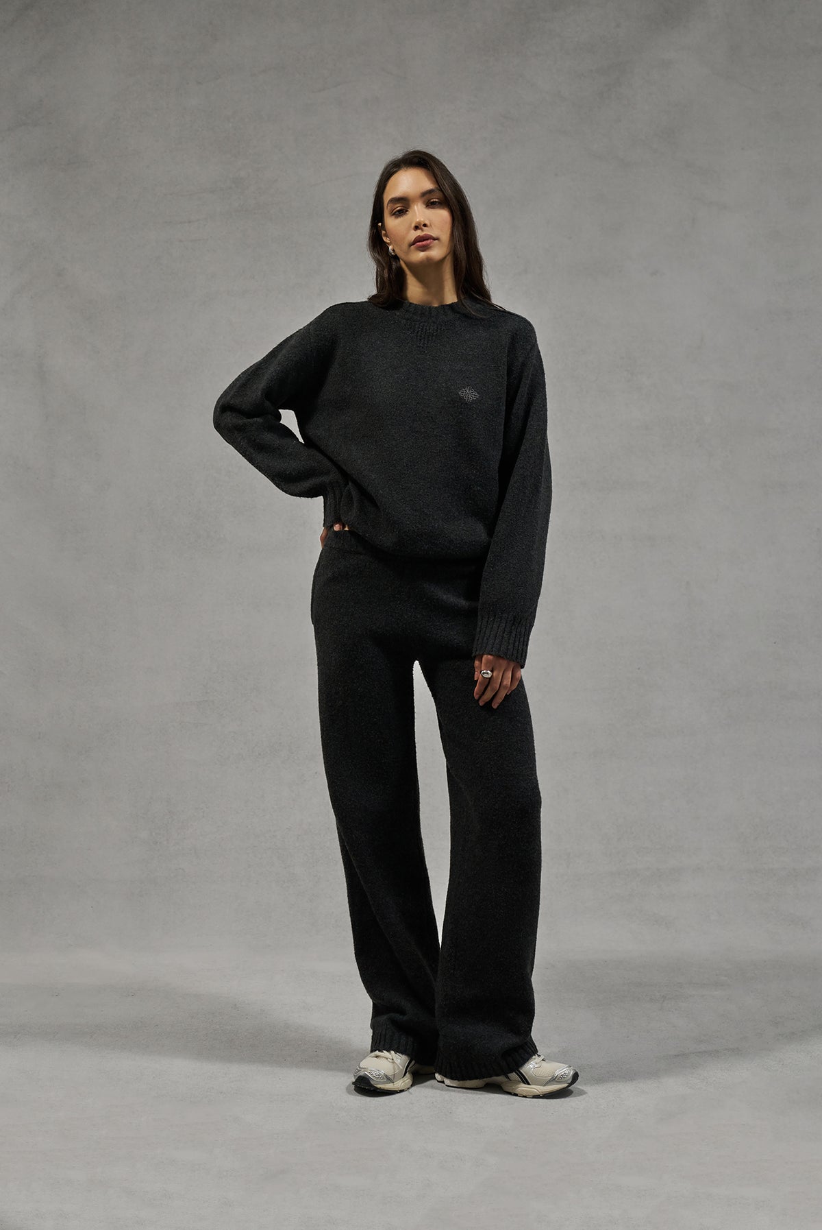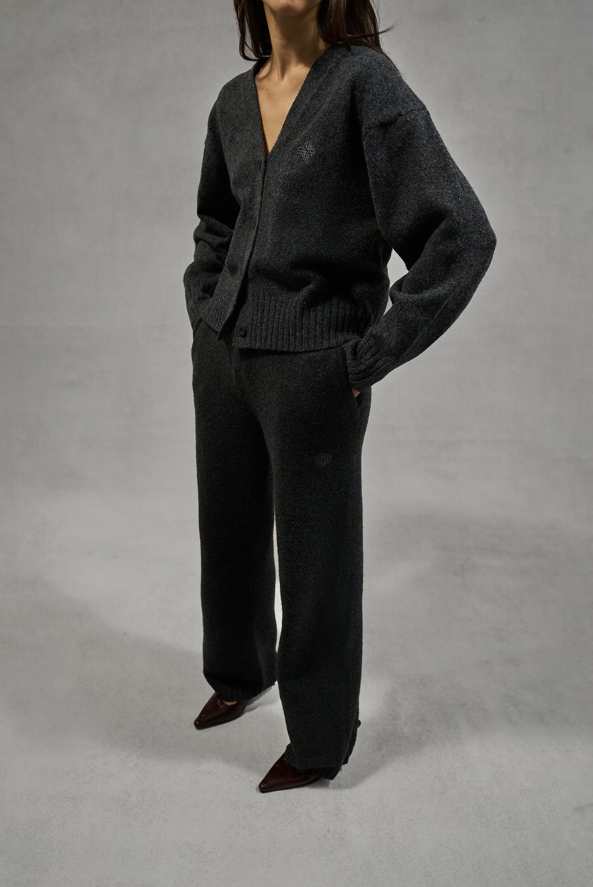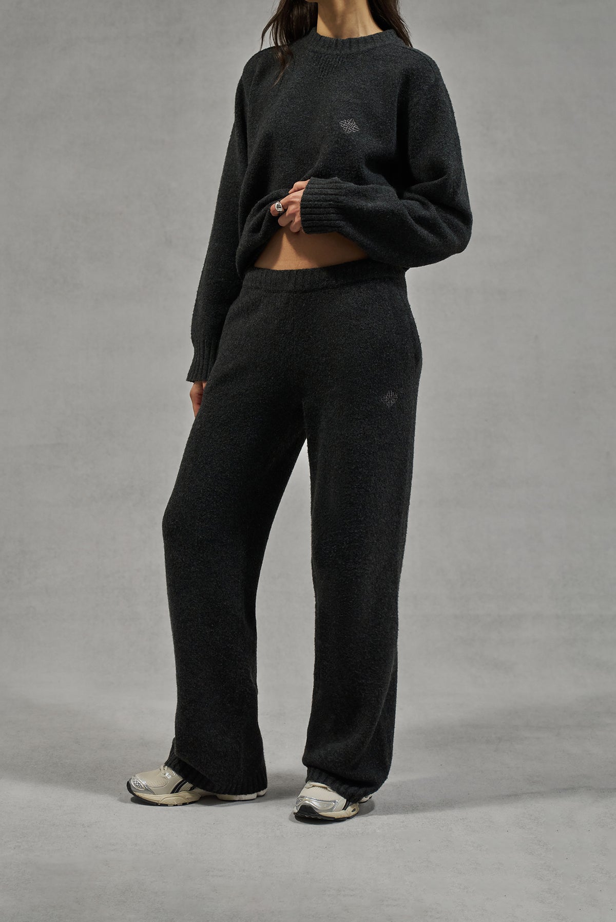 FLUFFY KNIT EMBLEM EMBROIDERED JOGGER - CHARCOAL