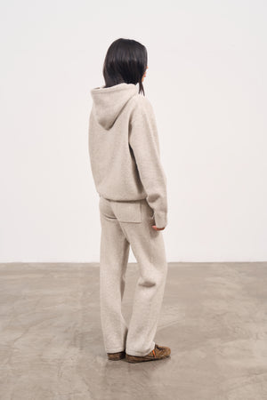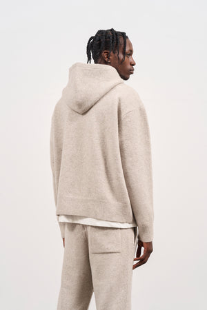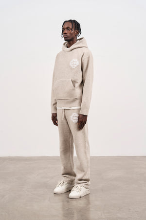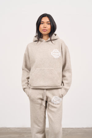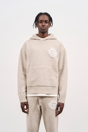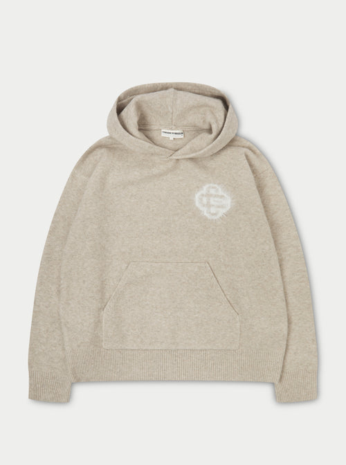 FLUFFY EMBLEM KNITTED HOODIE - BEIGE