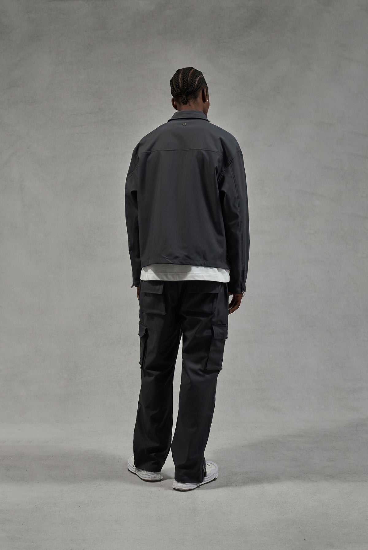 - Brushed silver zips at hem