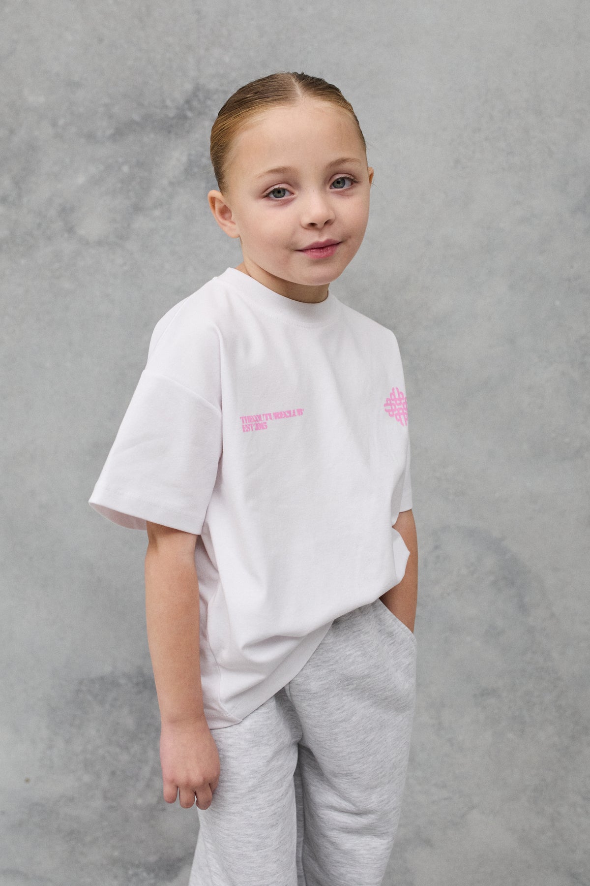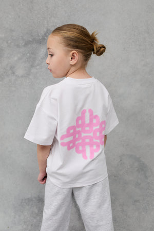 JNR BLURRED GRAPHIC EMBLEM T-SHIRT - WHITE/PINK