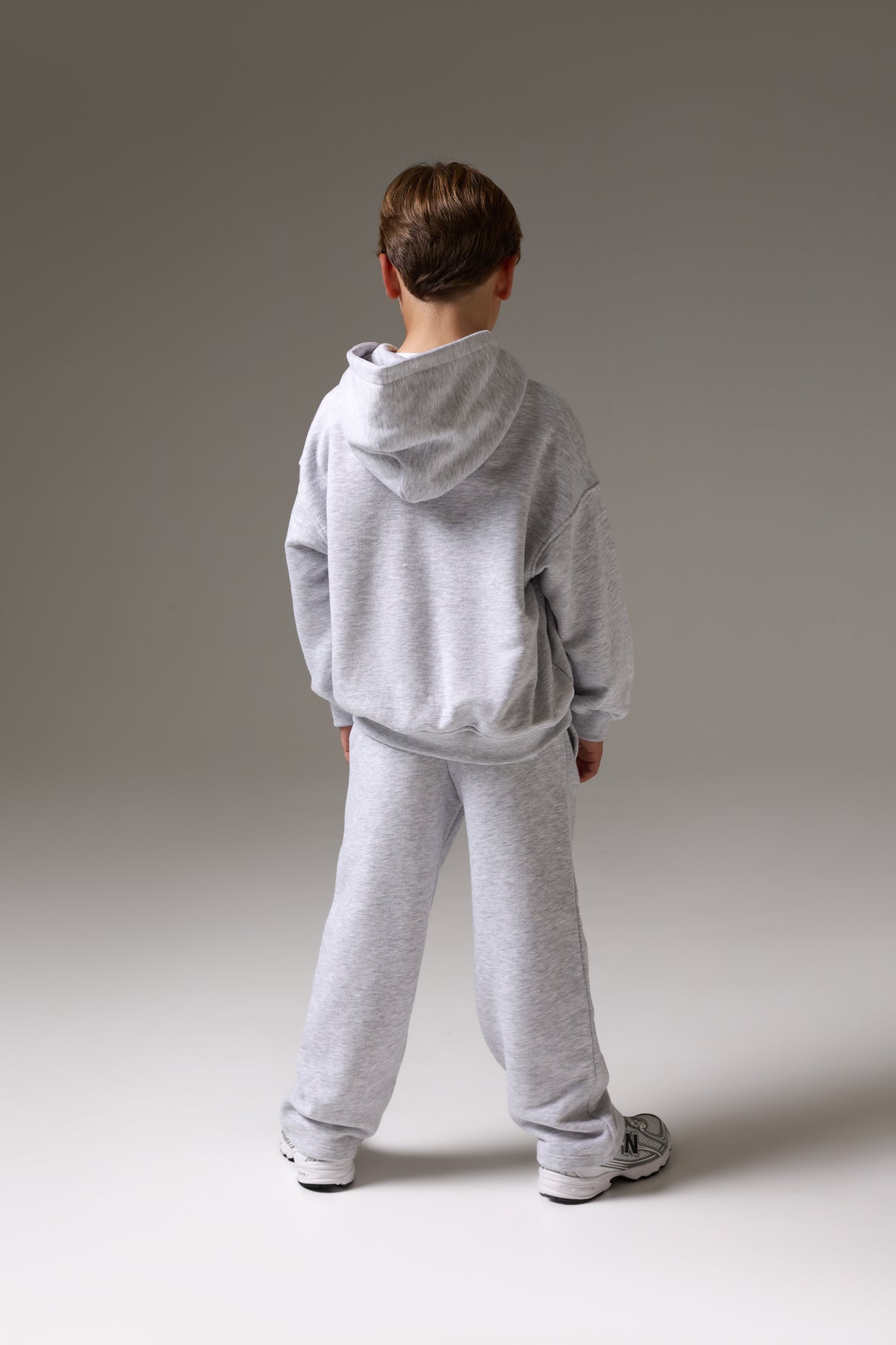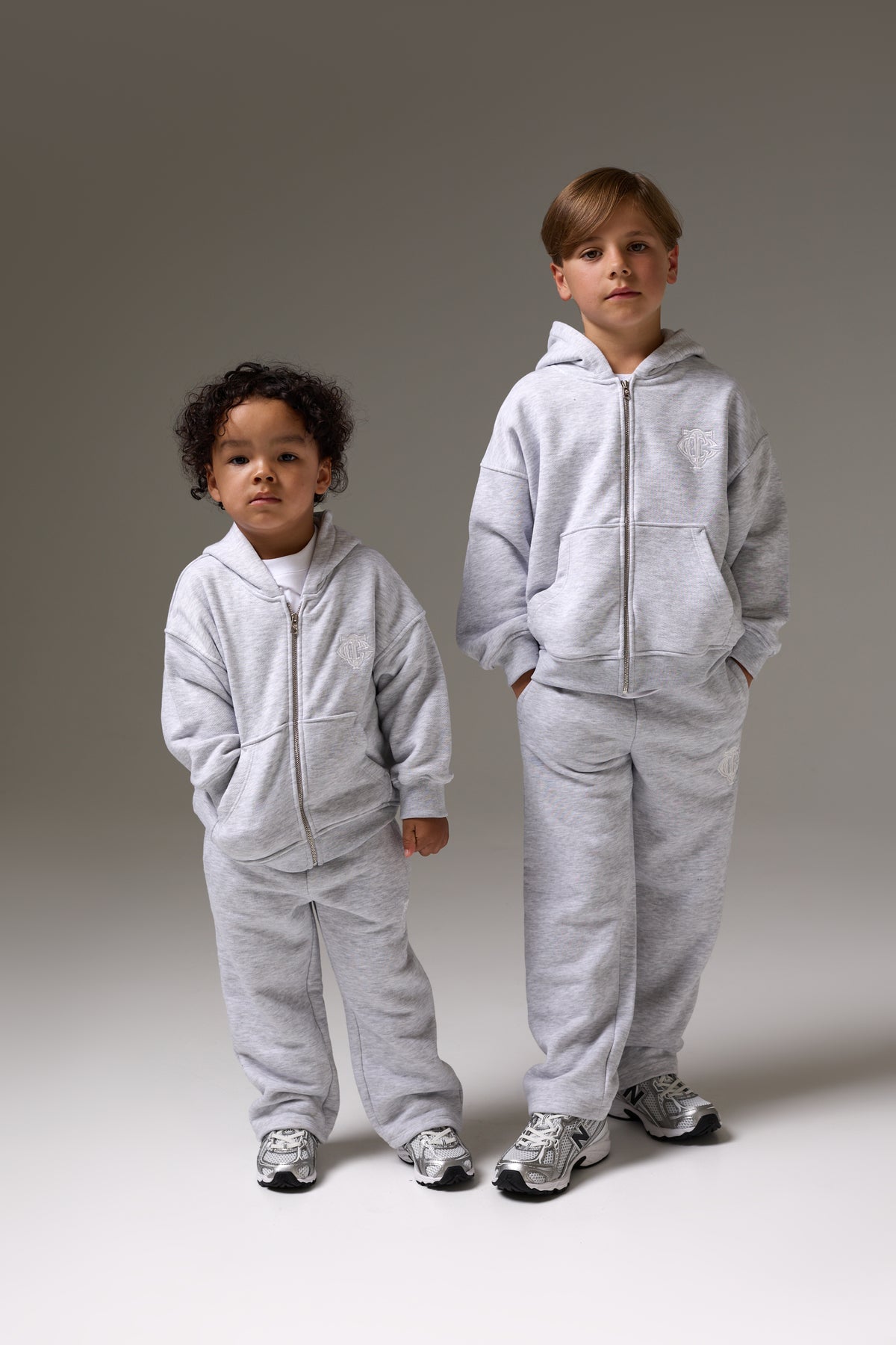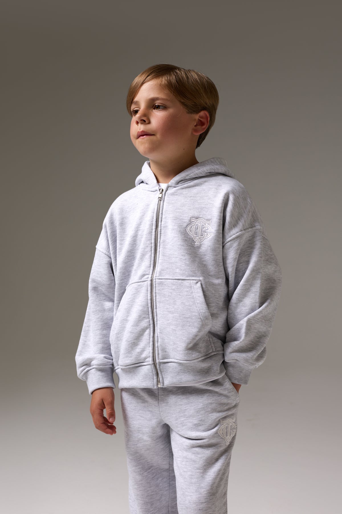 JUNIOR ZIP THROUGH EMBLEM APPLIQUE HOODIE - GREY MARL