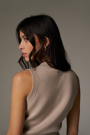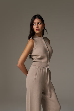 KNIT BUTTON THROUGH TOP - BEIGE