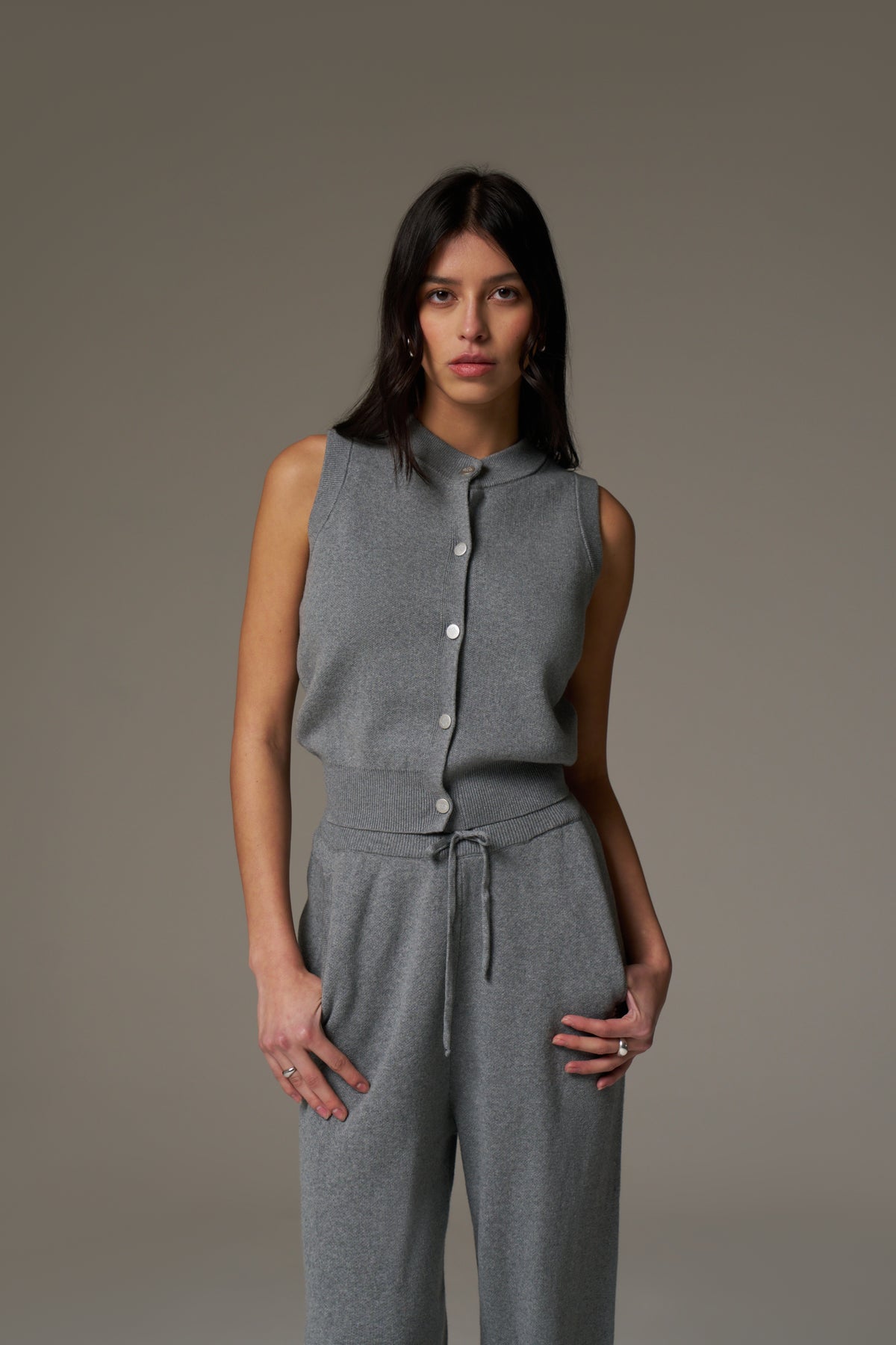 KNIT BUTTON THROUGH TOP - GREY MARL
