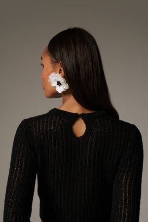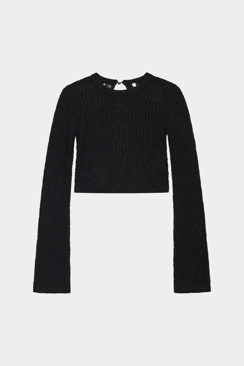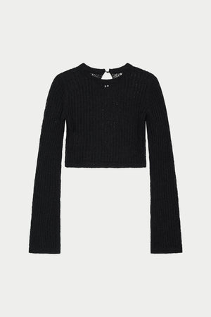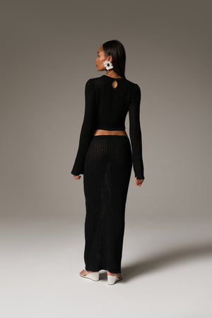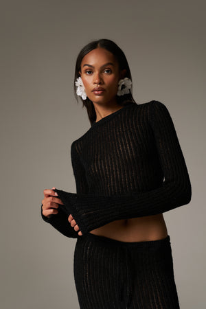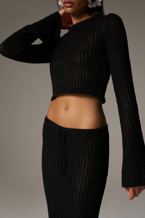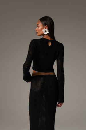 LADDER KNIT LONG SLEEVE TOP - BLACK