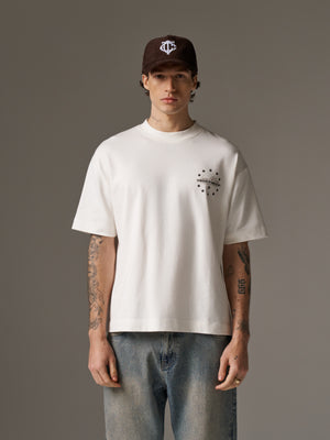 - Screen print artwork to front left of chest