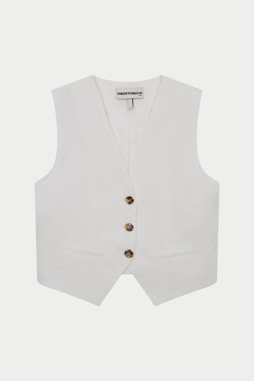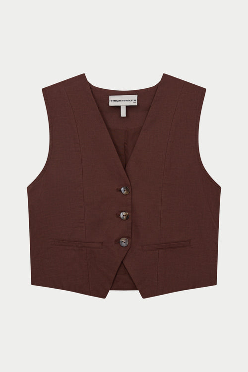LINEN BLEND WAISTCOAT - CHOCOLATE