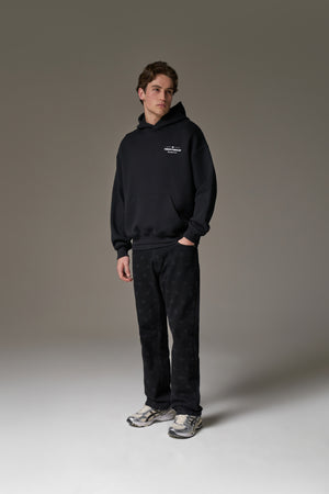 MIXED FONT GRAPHIC HOODIE - BLACK