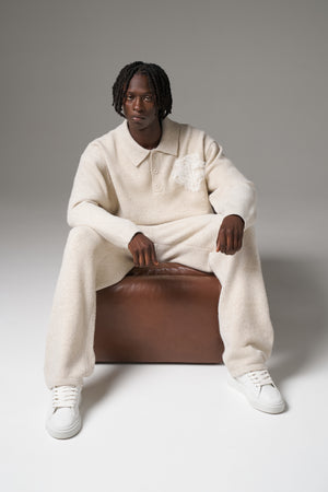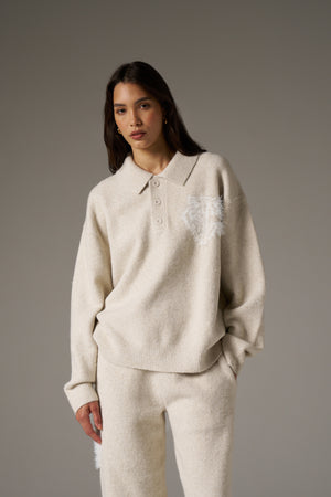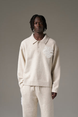 MONOGRAM FLUFFY KNIT POLO - BEIGE