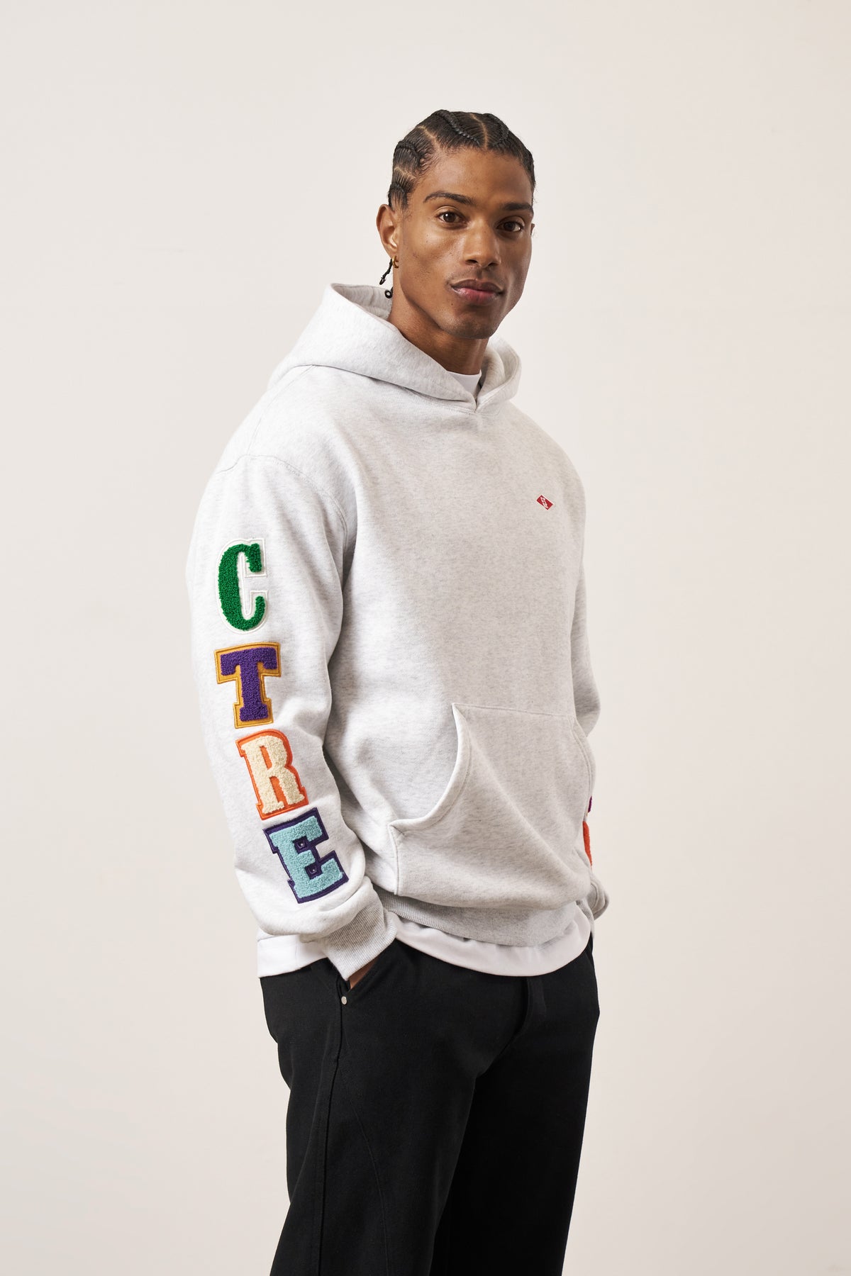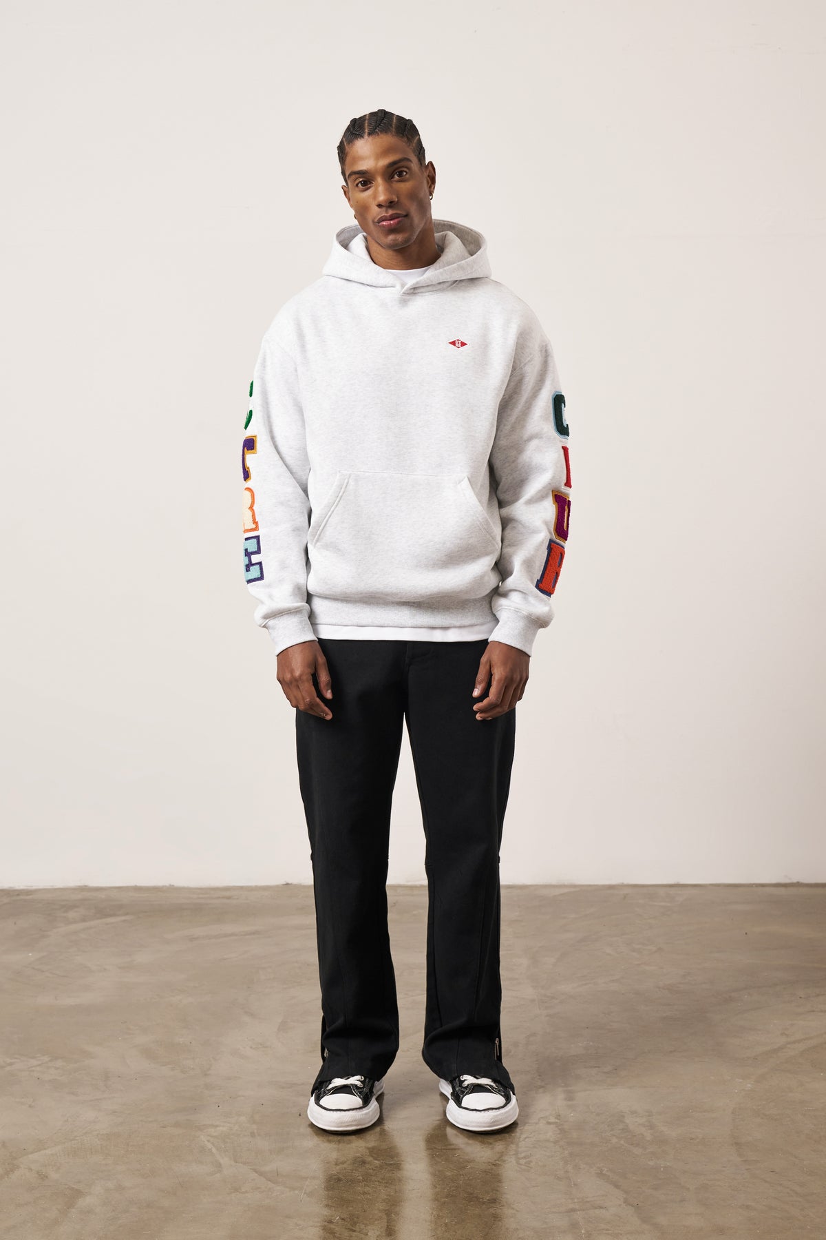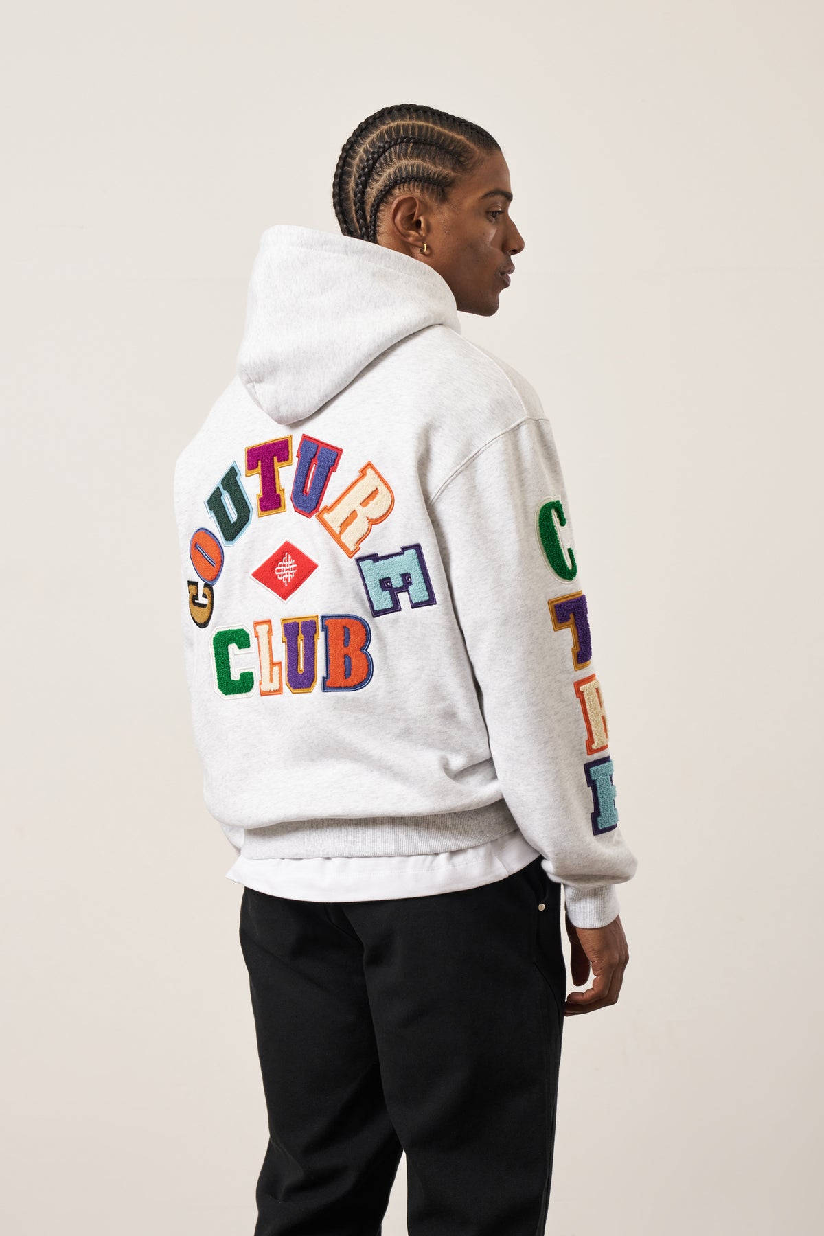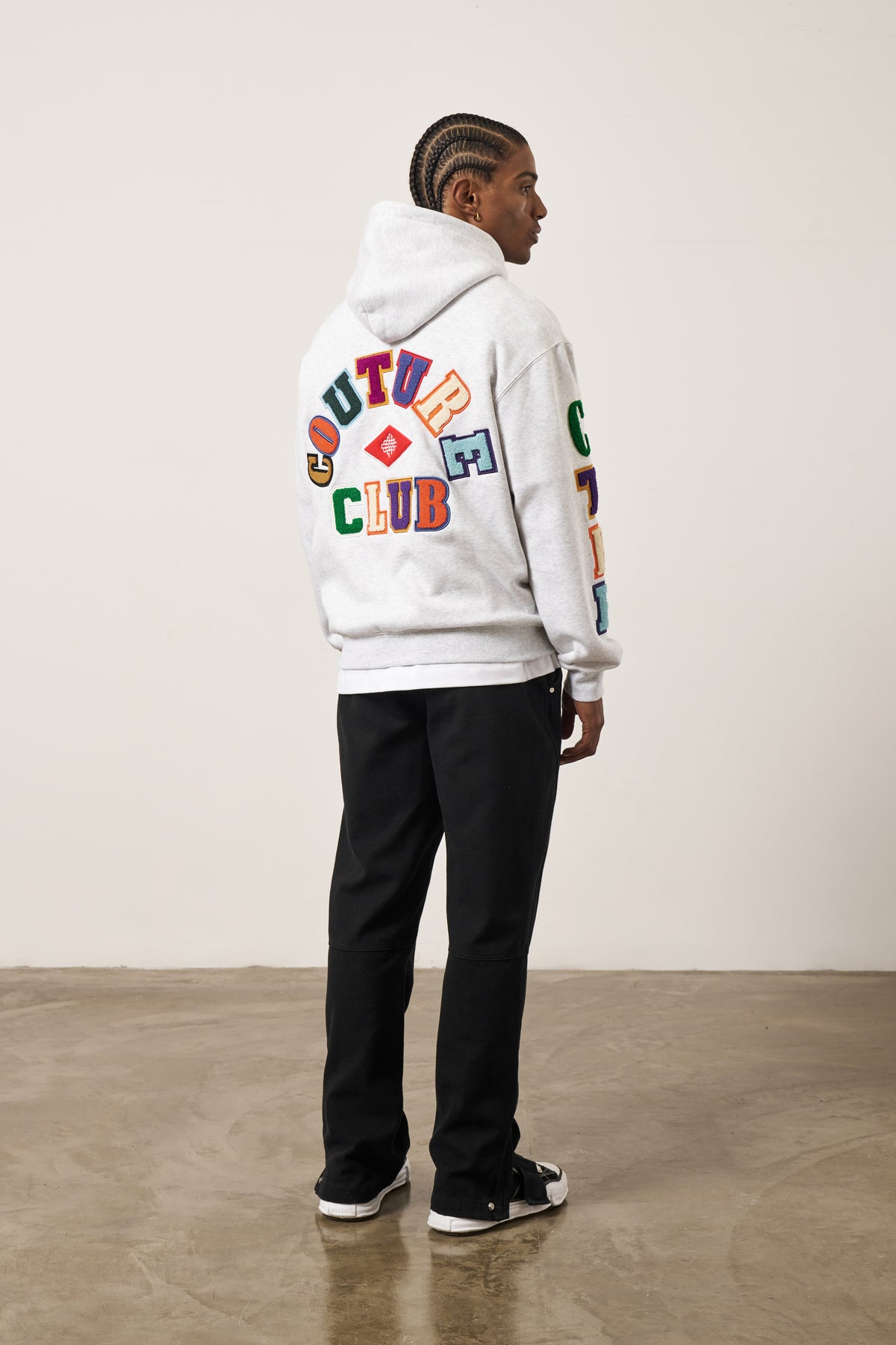 MULTIBADGE CHENILLE HOODIE - GREY MARL