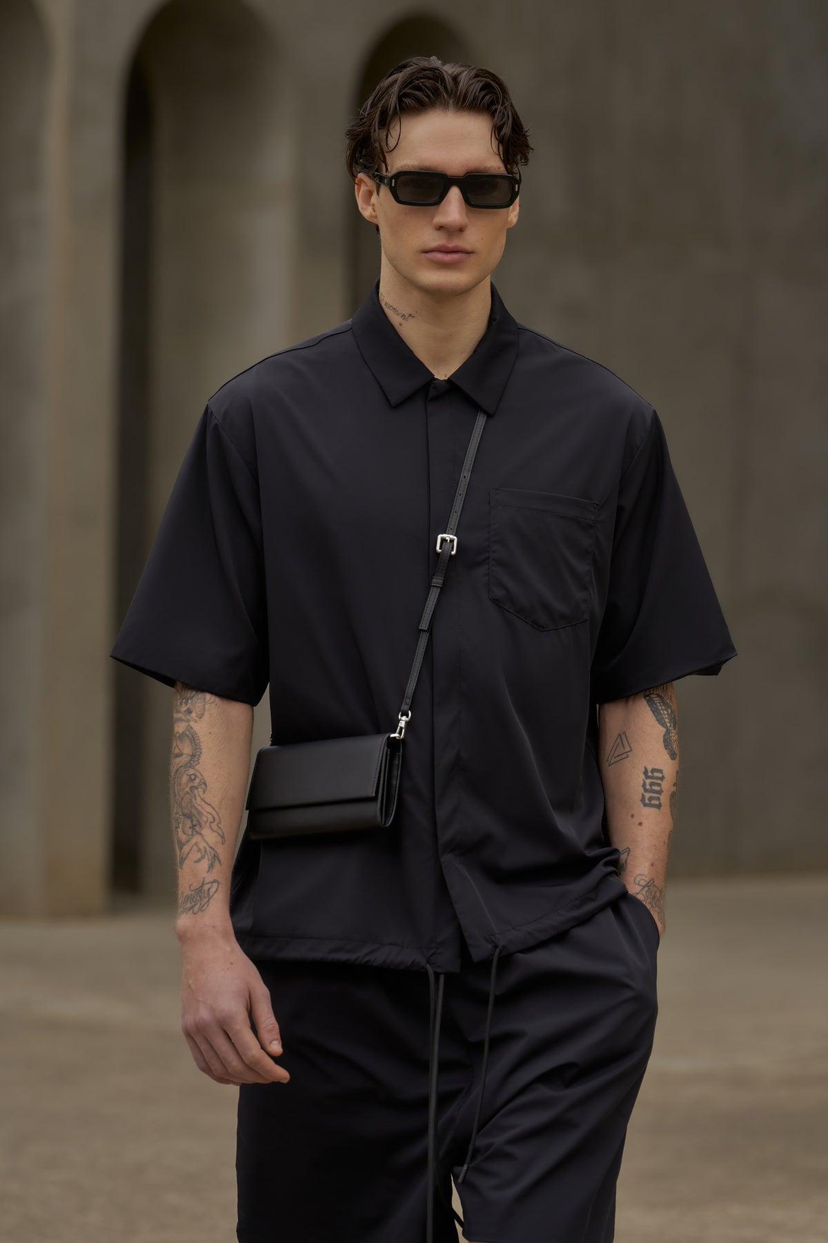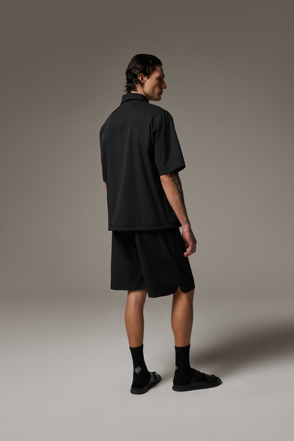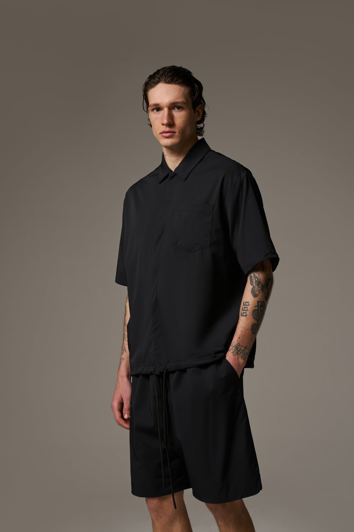 - Nylon relaxed fit short sleeved shirt with drawcords