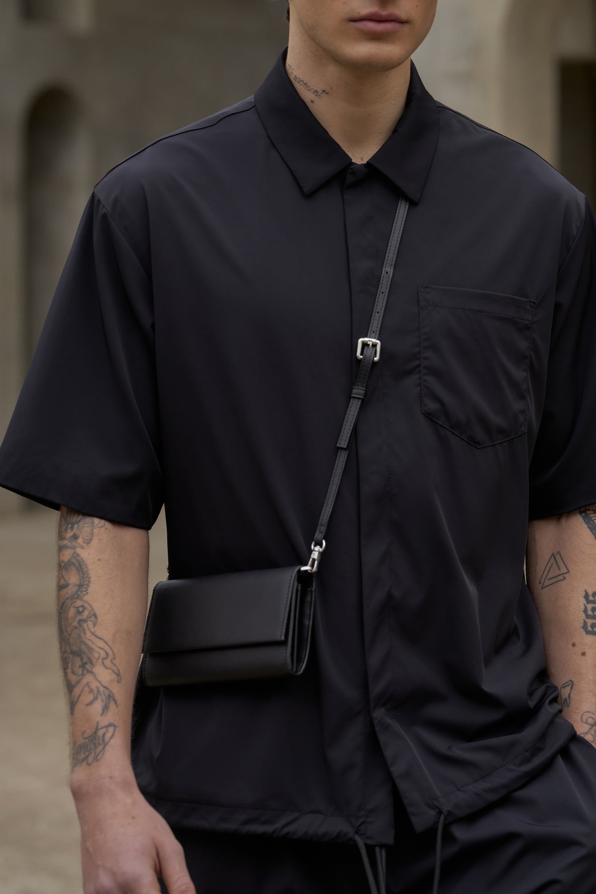 NYLON DRAWCORD SHIRT - BLACK