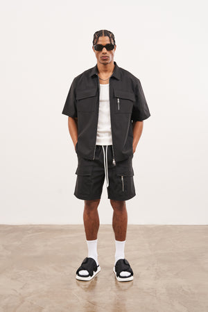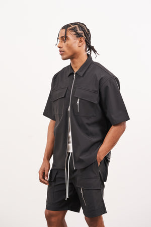 TECHNICAL HEAVYWEIGHT ZIP OVERSHIRT - BLACK