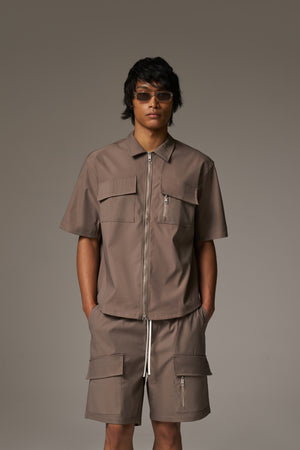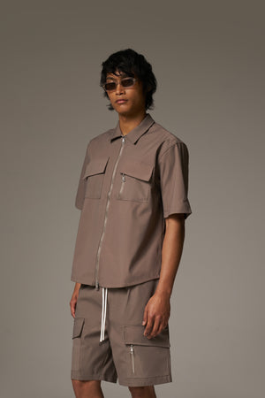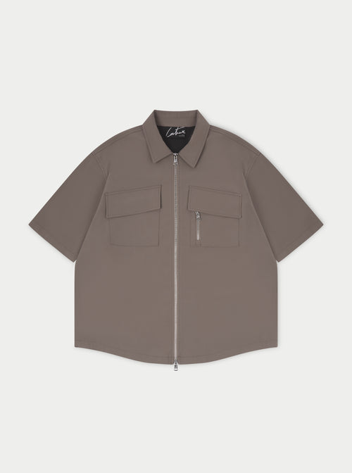 TECHNICAL HEAVYWEIGHT ZIP OVERSHIRT - COFFEE