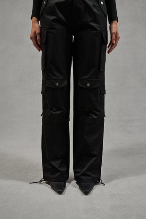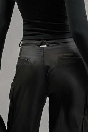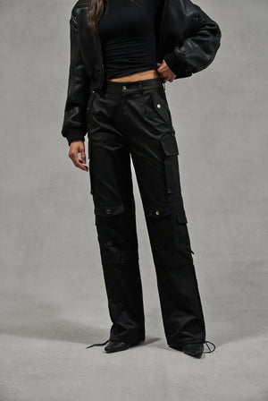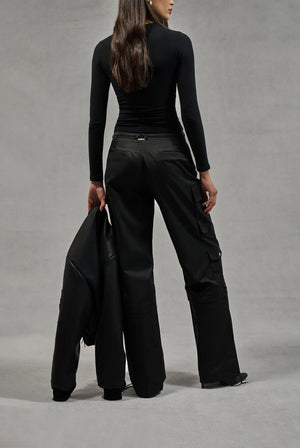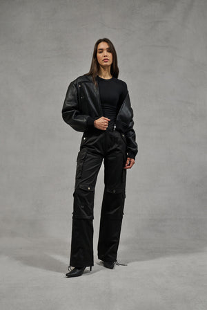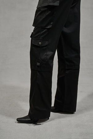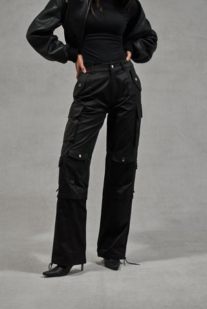 OVERSIZED TIE HEM CARGO PANTS - BLACK