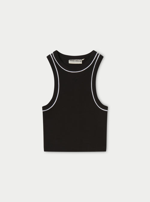 PIPED RACER CROP TOP - BLACK