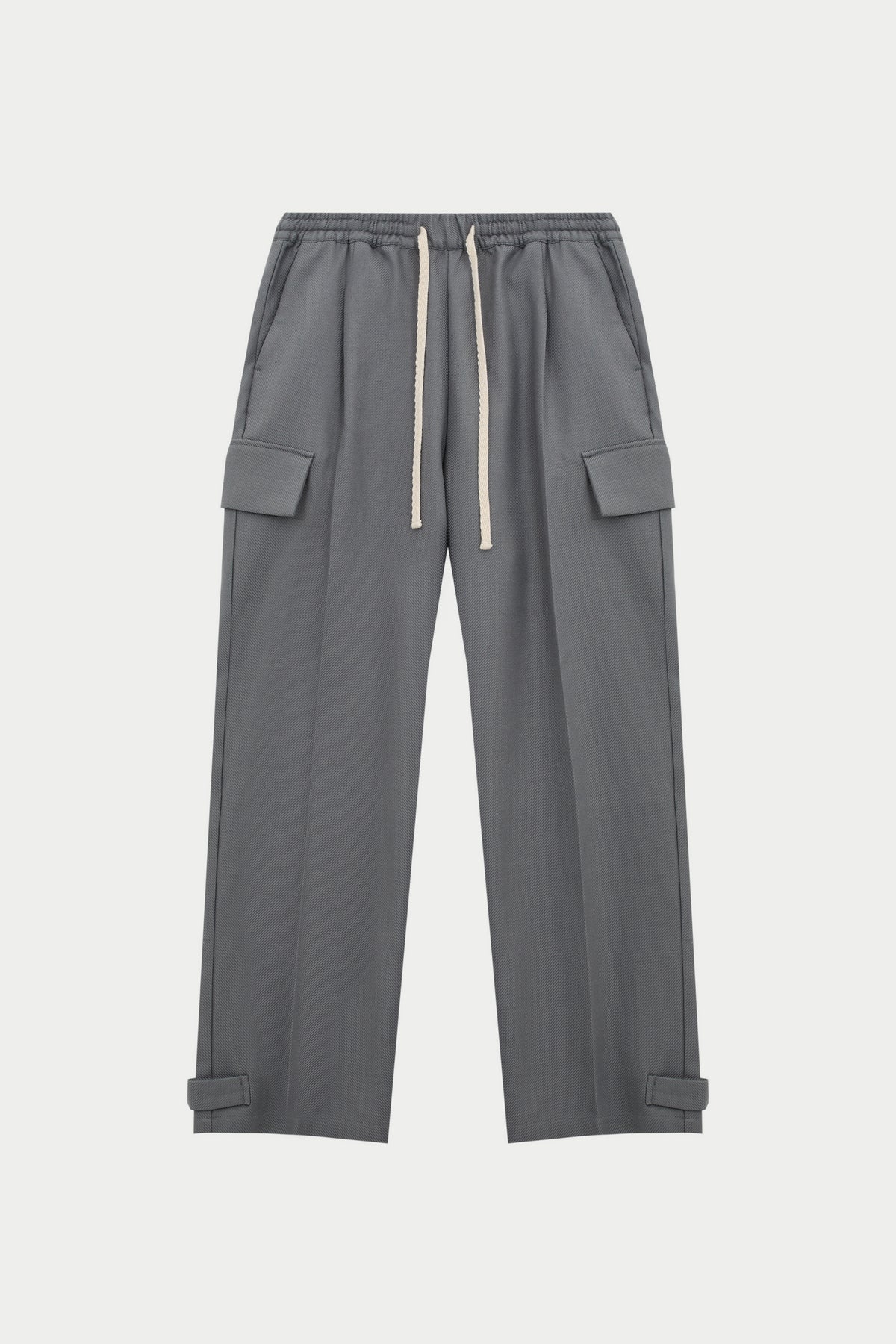 PLEATED WIDE LEG WOOL BLEND TROUSER - GREY