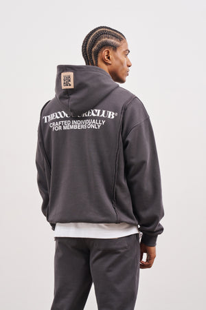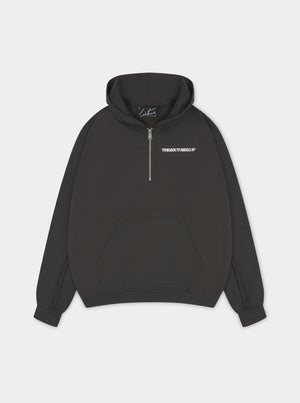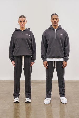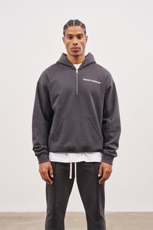 RAW SEAM QUARTER ZIP HOODIE - CHARCOAL
