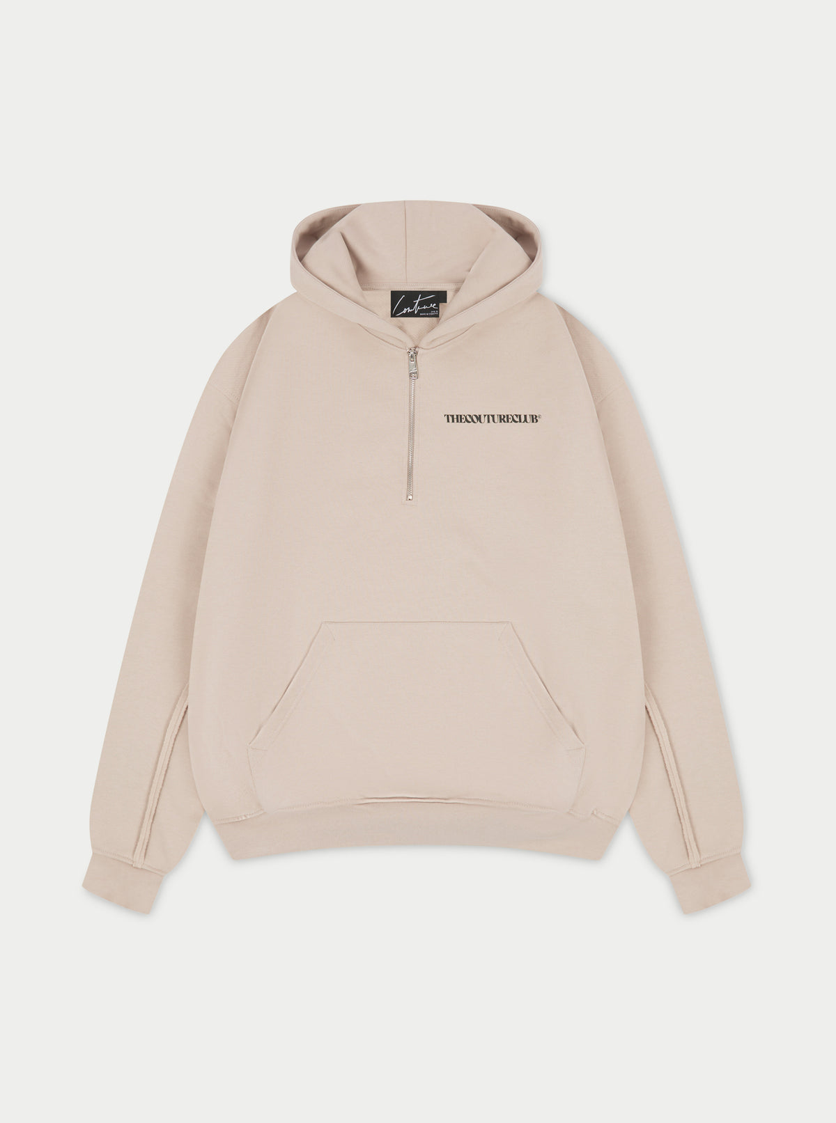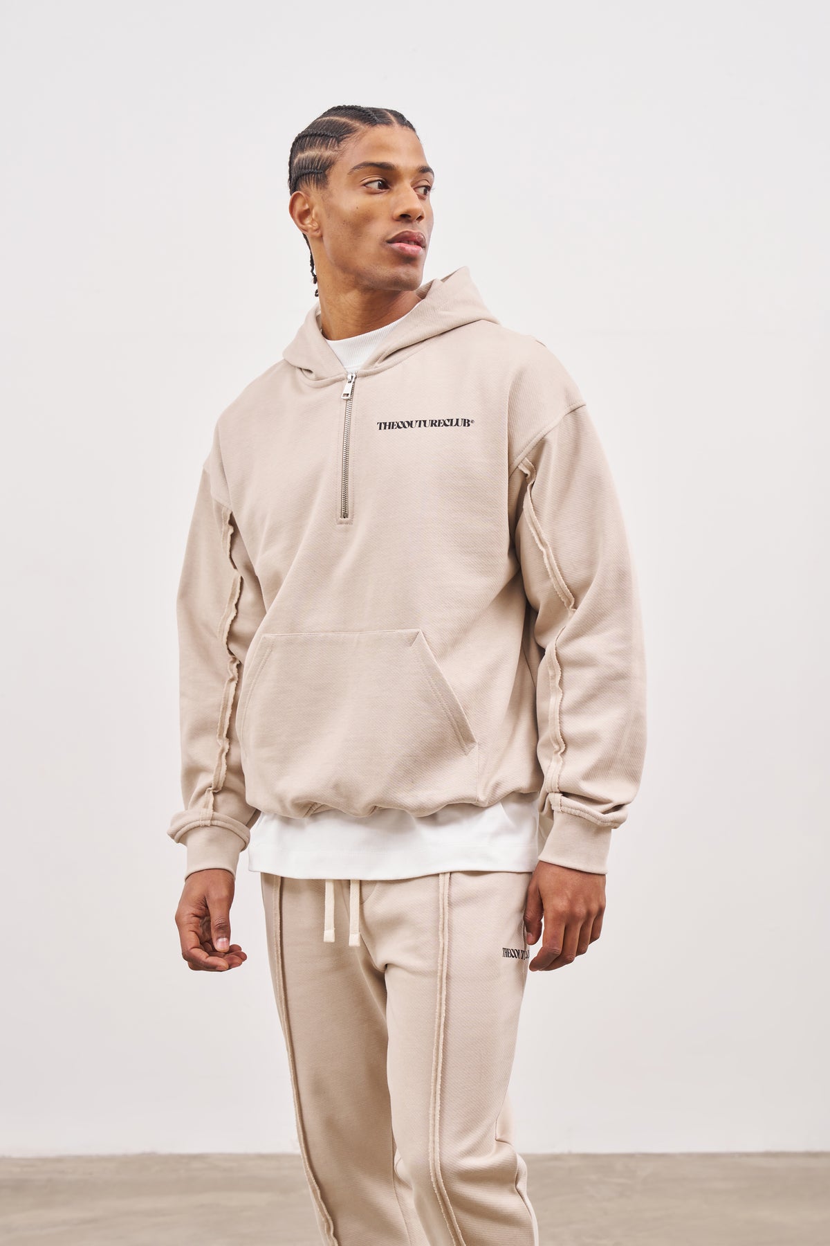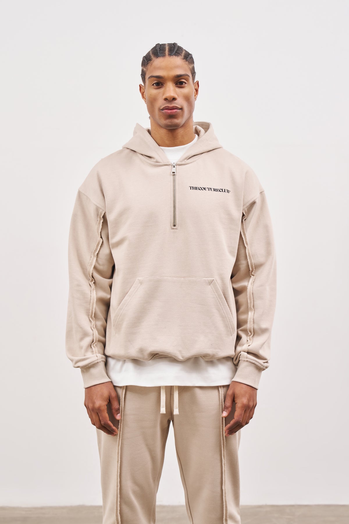 RAW SEAM QUARTER ZIP HOODIE - BEIGE