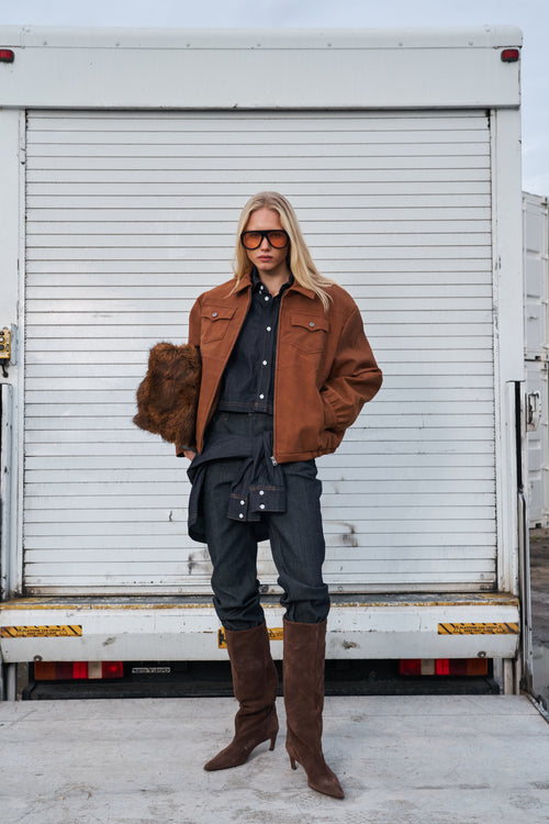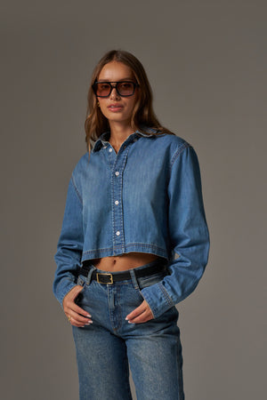- Cropped fit long sleeved denim shirt