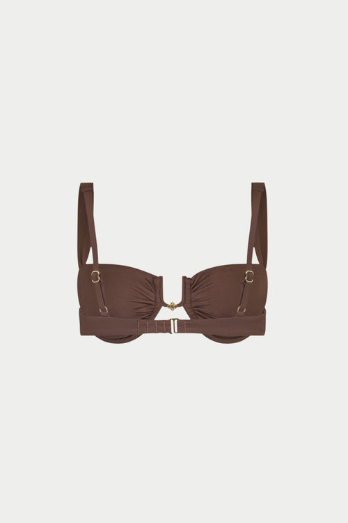 RUCHED CUP BIKINI TOP - CHOCOLATE