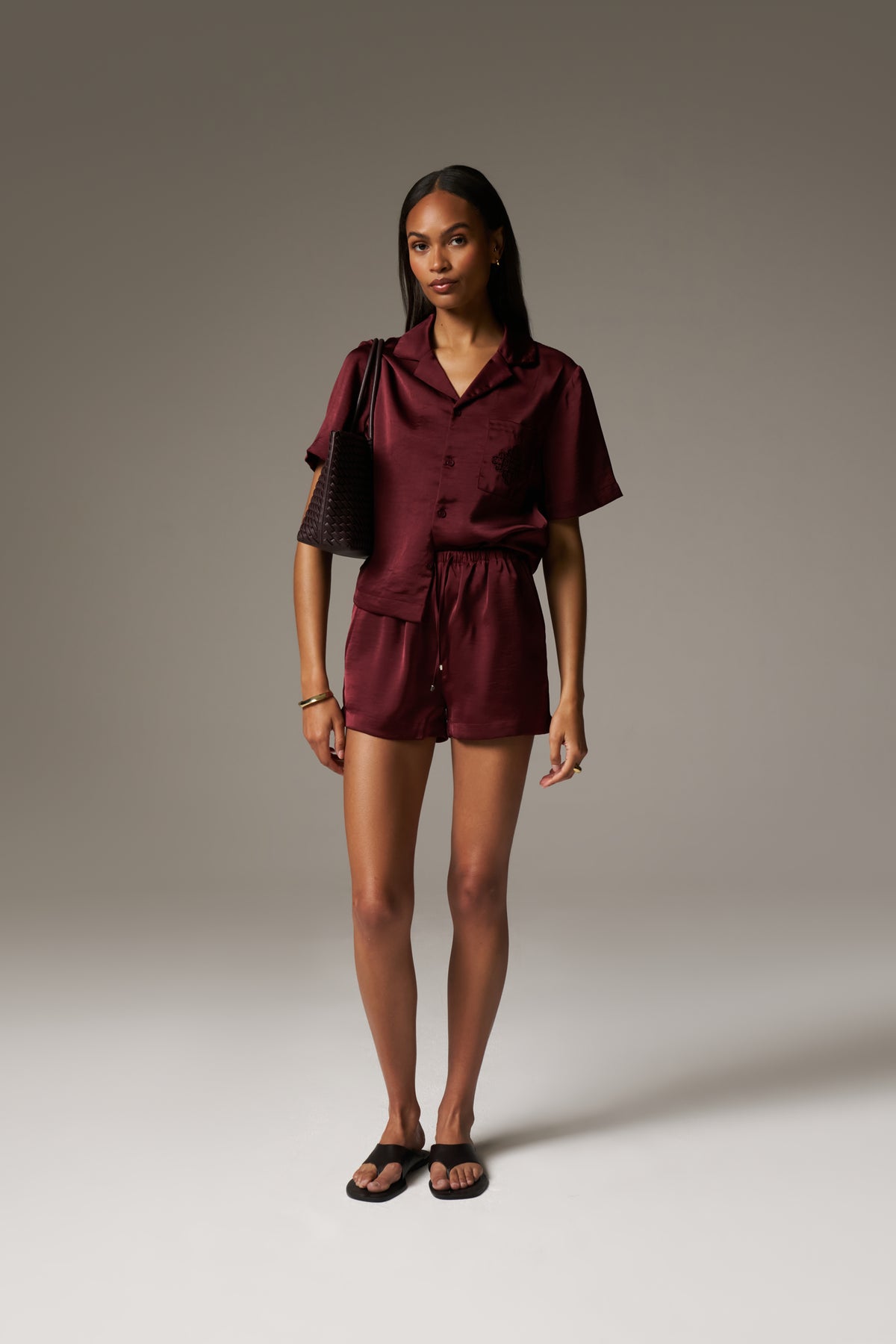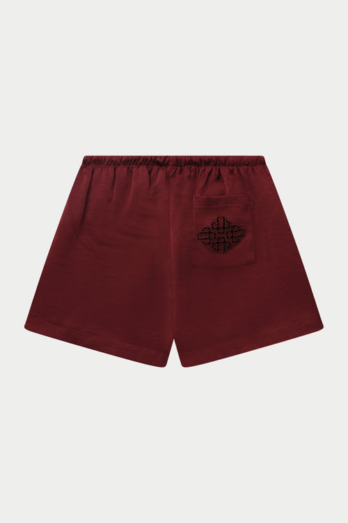 - Patch pocket to back with mixed embroidery and lace appliqué emblem