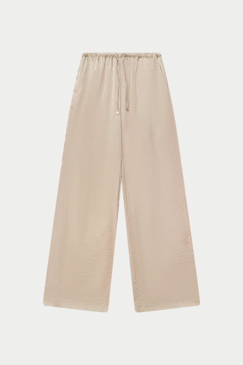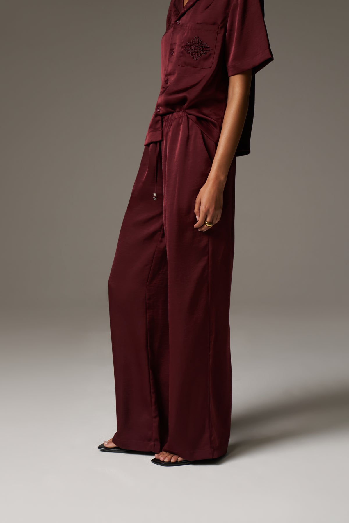 SATIN WIDE LEG EMBLEM TROUSERS - BURGUNDY