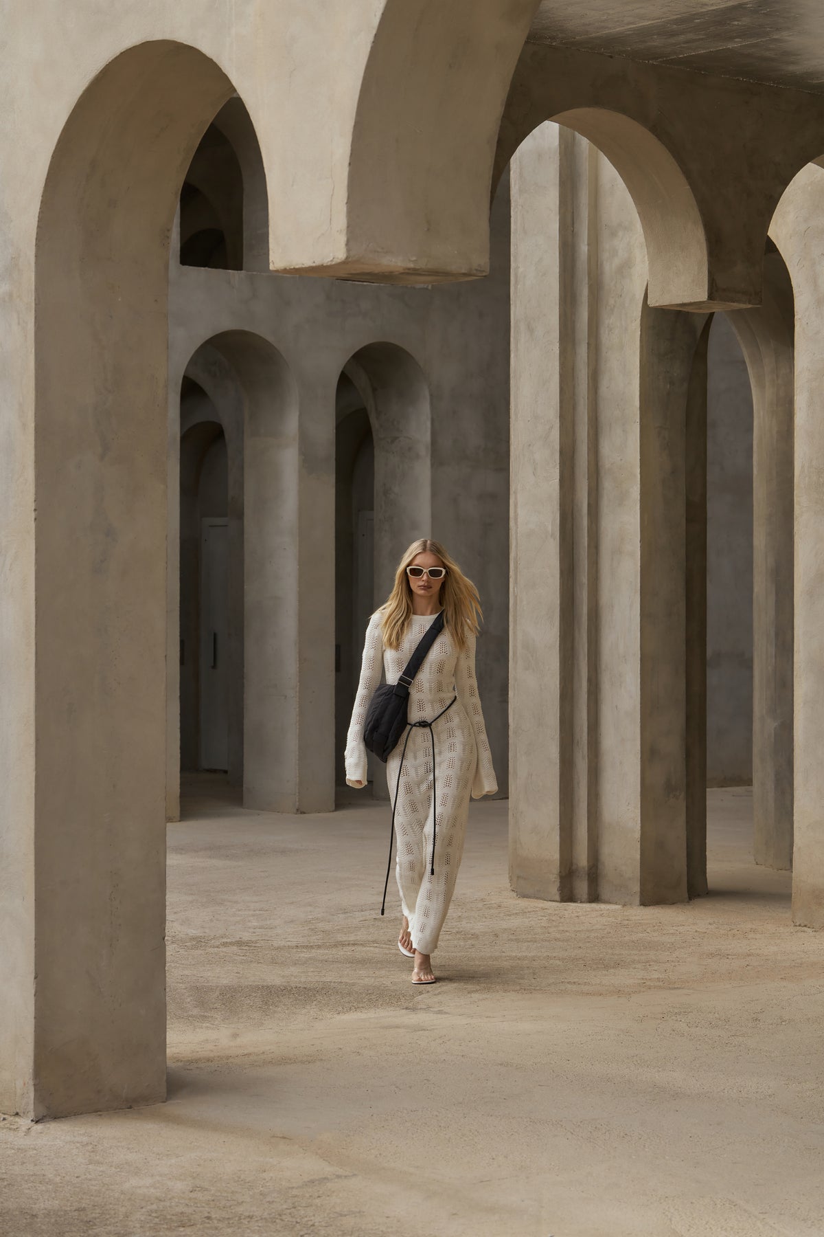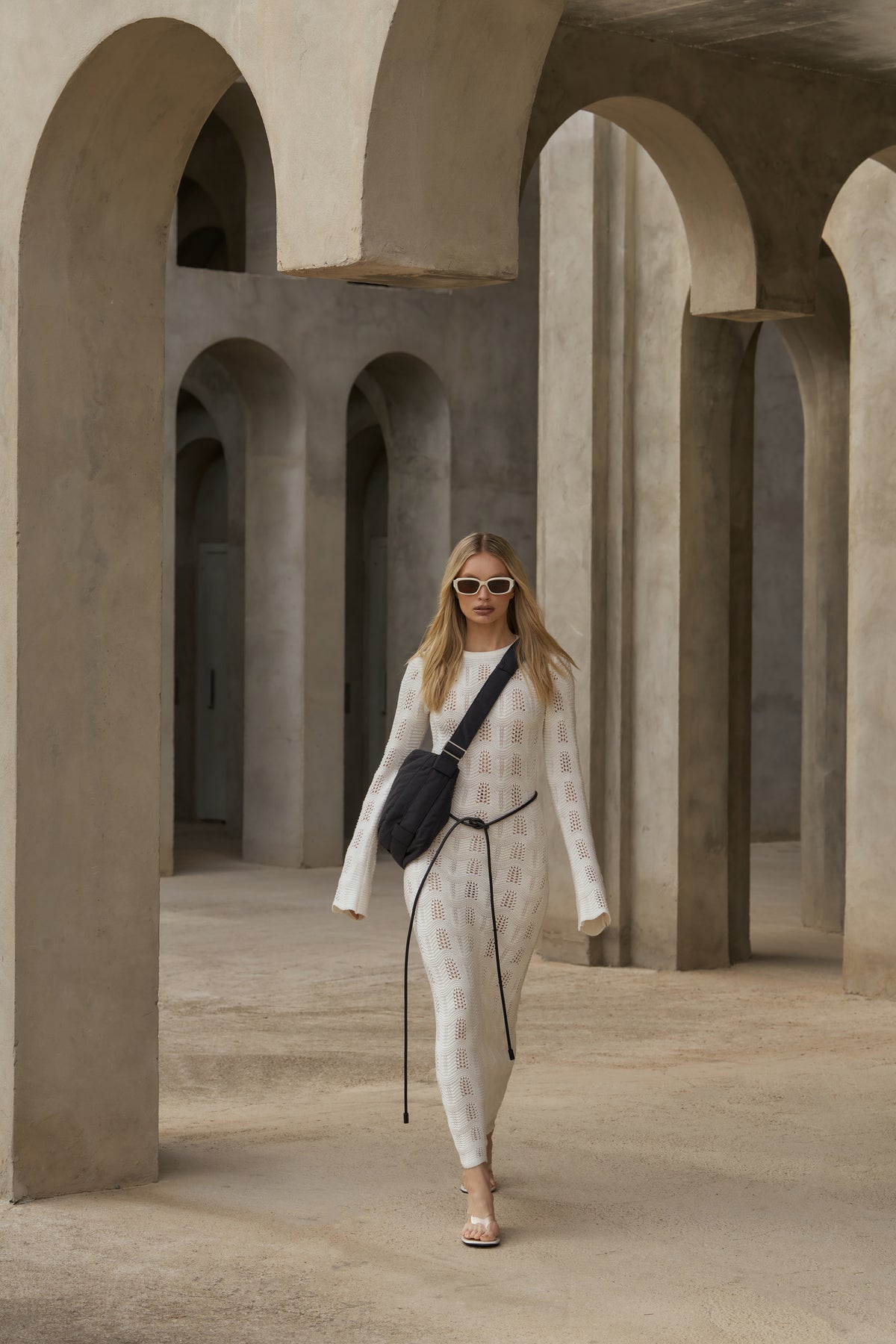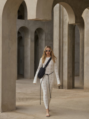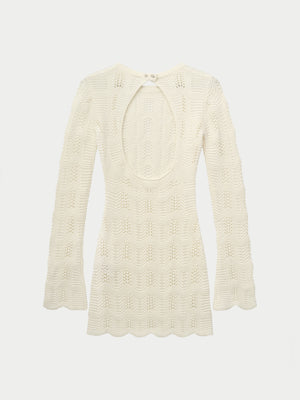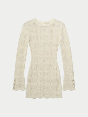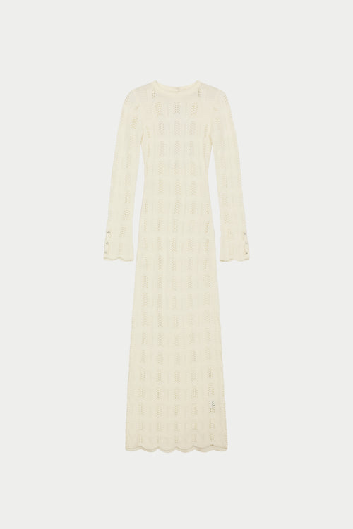 SCALLOP EDGE KNITTED MAXI DRESS - OFF WHITE